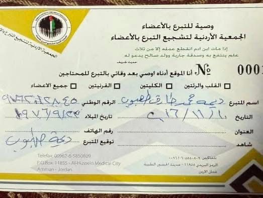 > “وأنا شخصياً قمت بالتسجيل قبل سنوات، وأدعوكم إلى ذلك، وأدعوكم إلى متابعة حساب الدكتور محمد حسان الذنيبات لمعرفة المزيد عن التبرع بالأعضاء.”