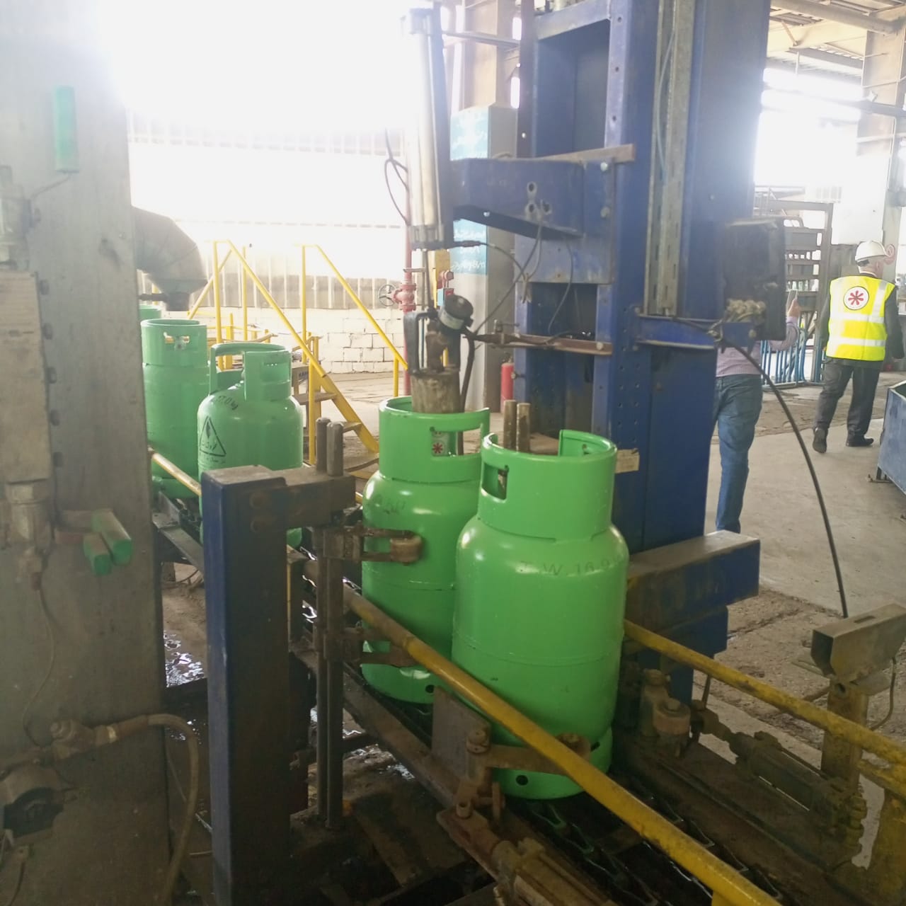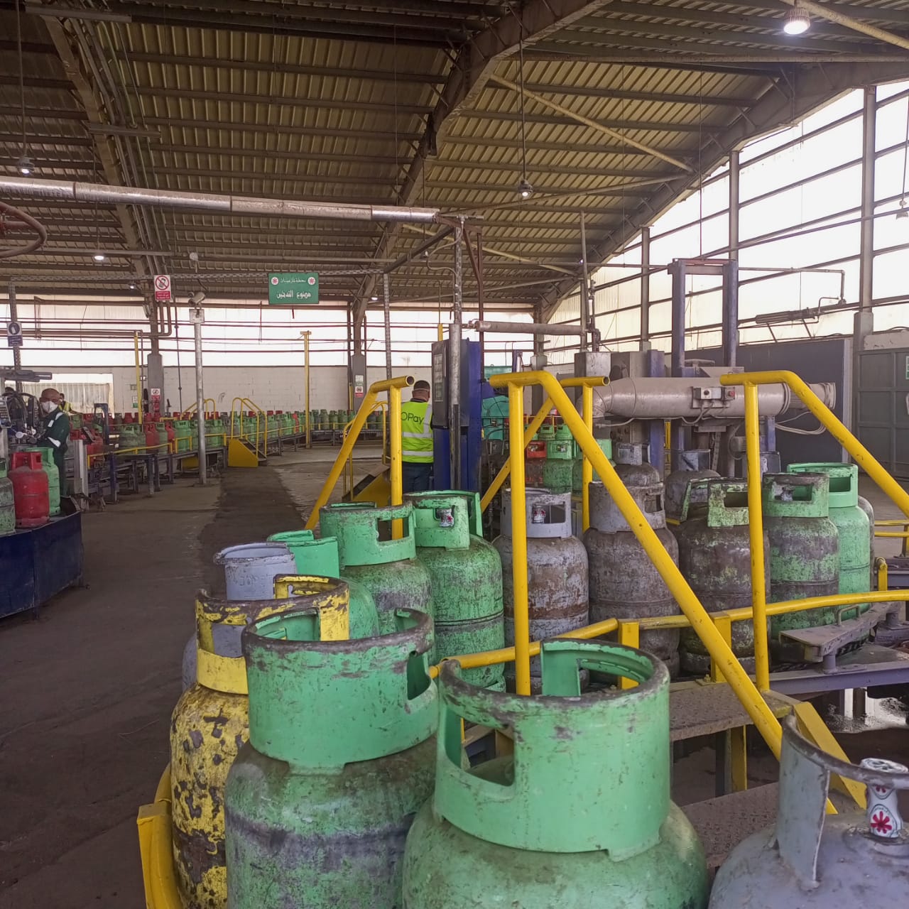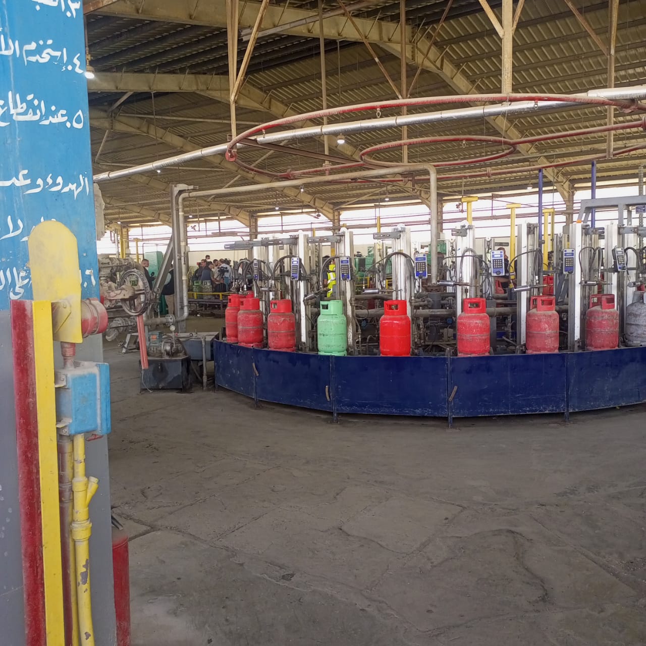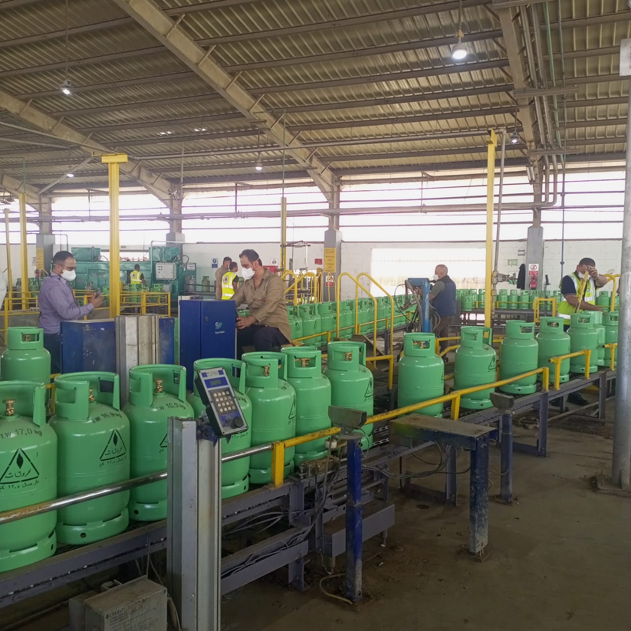 التعبئة الآلية ويتم فيها نقل الأسطوانات إلى خطوط التعبئة الآلية، حيث يتم ملؤها بكمية محددة وموزونة بدقة من الغاز المسال لضمان الوزن الصحيح. وصولا إلى
