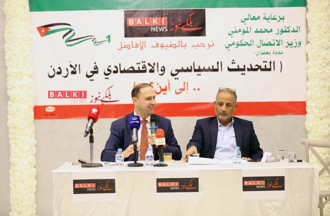 كما أكد المومني أن مسار التحديث الاقتصادي يسير وفق رؤية واضحة تهدف إلى تحسين معيشة المواطنين، مشيراً إلى أن الحكومة حققت تقدماً ملحوظاً في تفعيل شراكات استثمارية جديدة وضبط النفقات، وشدد على أهمية الحوار المباشر الذي يهدف إلى إنضاج الرؤى، مشيداً بدور "صالون بلكي" في تفعيل هذا الحوار خارج العاصمة.