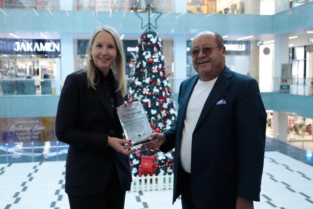 واطلعت السفيرة الهولندية الزيارة على نتائج مشروع "الأبنية الخضراء في الأردن" المدعوم من الحكومة الهولندية، والذي أثمر عن شراكة ناجحة افضت إلى حصول النافورة مول على شهادة EDGE العالمية التي تمنح للمباني المستدامة ذات الكفاءة في استخدام الموارد.