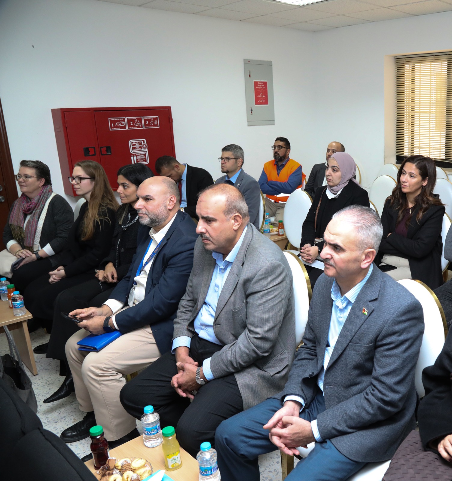 The Minister of Water and Irrigation, Eng. Raed Abu Al-Soud, inaugurated the operation of the photovoltaic solar energy project at the Zara–Ma’in Station, in the presence of the European Union Ambassador Pierre-Christophe Chatzisavas, the Secretary General of the Water Authority Eng. Sufyan Al-Battayneh, the CEO of Miyahuna Company Eng. Mohammad Al-owran, and representatives of the European Bank for Reconstruction and Development (EBRD).