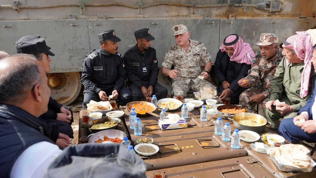 هناك بتوفيق المولى وعناية الرحمن الصمدانية، ومع غبرة الميادينوباللباس العسكري والفوتيك والقايش وبلقمة هنية لقلاية البندورة علىالحطب، يقضي جلالته اجمل لحظات عيد ميلاده ..لحظات المعنويات، لحظات نستذكر فيها سيرة عطرة من التضحيات لقواتنا الباسلة فيان تبقى على الدوام درع الوطن المنيع الهايب المهيوب، تقف هذهالقوات المسلحة برعاية الهاشمين صخرةً منيعةً تتكسر عليها كلالمؤامرات والصفقات التي تستهدف النيل من كرامة الأردنوالأردنيين!! فلا غرابة ان يقضي جلالته عيد ميلاده ال 56 في منطقةالمقابلين، ومع الجند و بين العسكر، مفتتحاً متحف الدبابات الملكيالذي يضم اليات مدرعة كان لها دور في معارك الحق والبطولة، التيخاضتها القوات المسلحة الأردنية دفاعاً عن الوطن وثرى فلسطين.