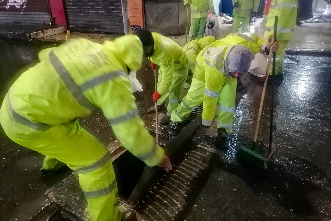 حيث ورد 52 ملاحظة لتجمع و ارتفاع منسوب مياه الأمطار في الشوارع، نتيجة الشدة المطرية وسرعة جريان المياه وانجراف التربة مما ادى الى التأخر في وصول المياه إلى المصارف، وتم التعامل معها وإجراء اللازم من قبل كوادر الأمانة والياتها المنتشرة في الميدان.