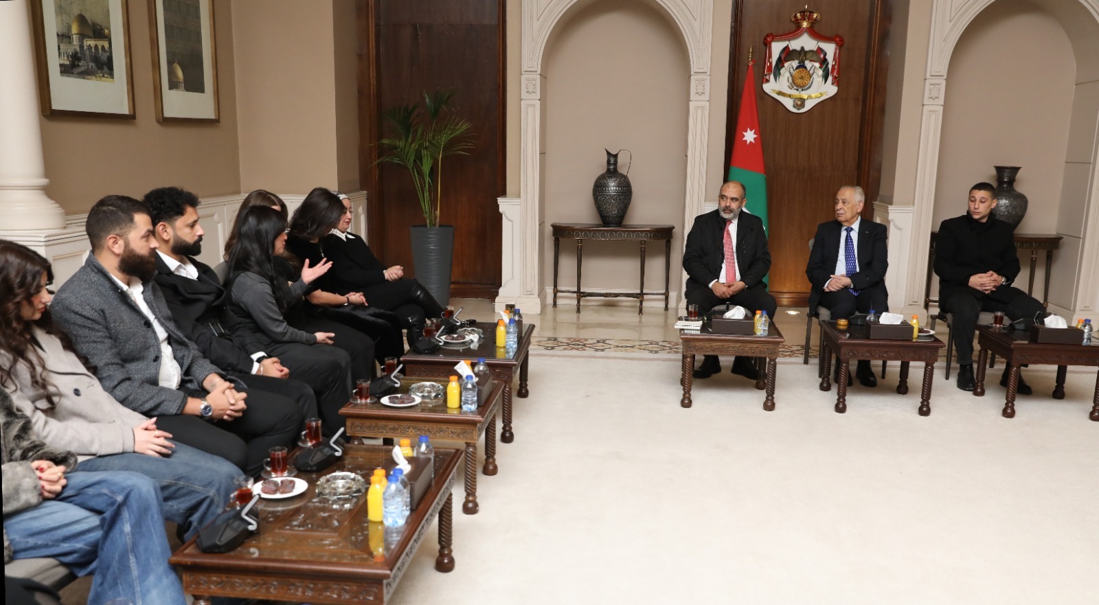 *عمان- 30 كانون الأول 2025*- التقى رئيس الديوان الملكي الهاشمي يوسف حسن العيسوي، اليوم الثلاثاء، شبابًا مؤثرين على منصات التواصل الاجتماعي من منصة "أنا مؤثر"، ووفدًا من معلمي مدرسة ذيبان الأساسية، في لقاءين حواريين منفصلين.