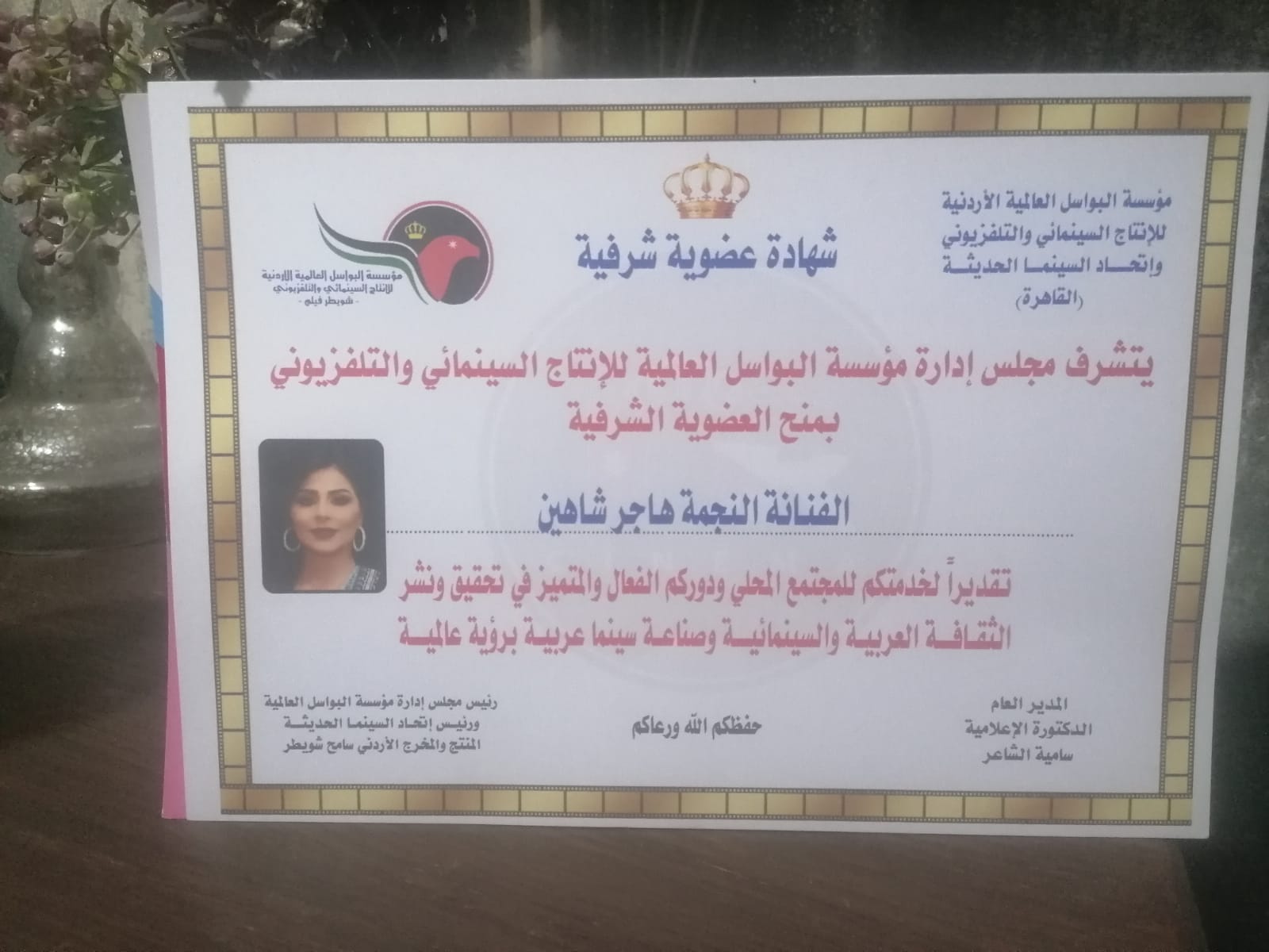 وفي حفل ختام المهرجان، جرى تكريم فريق عمل المسرحية تقديرًا لقيمتها الفنية ورسالتها الإنسانية و الثقافية، كما تم الإعلان عن منح الفنانة والمخرجة هاجر شاهين عضوية اتحاد السينمائيين في القاهرة، في اعتراف عربي رسمي بمسيرتها الإبداعية وإسهامها في تطوير الخطاب المسرحي المعاصر. و منح العضوية للفنان باسم خليل لما قدموه من ابداع فاق تصور الجميع.