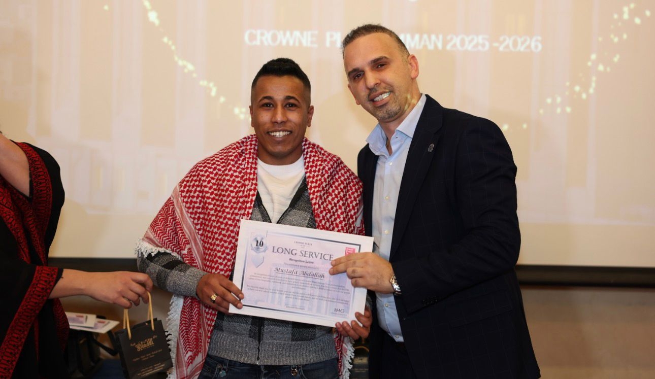 وتأتي هذه الاحتفالية تأكيدا على التزام فندق كراون بلازا عمّان بدوره الوطني والمجتمعي، وترسيخ القيم المؤسسية القائمة على الانتماء، والتقدير، والعمل بروح واحدة، بما ينسجم مع رؤية الفندق ونهج مجموعة IHG في دعم الإنسان قبل المكان.