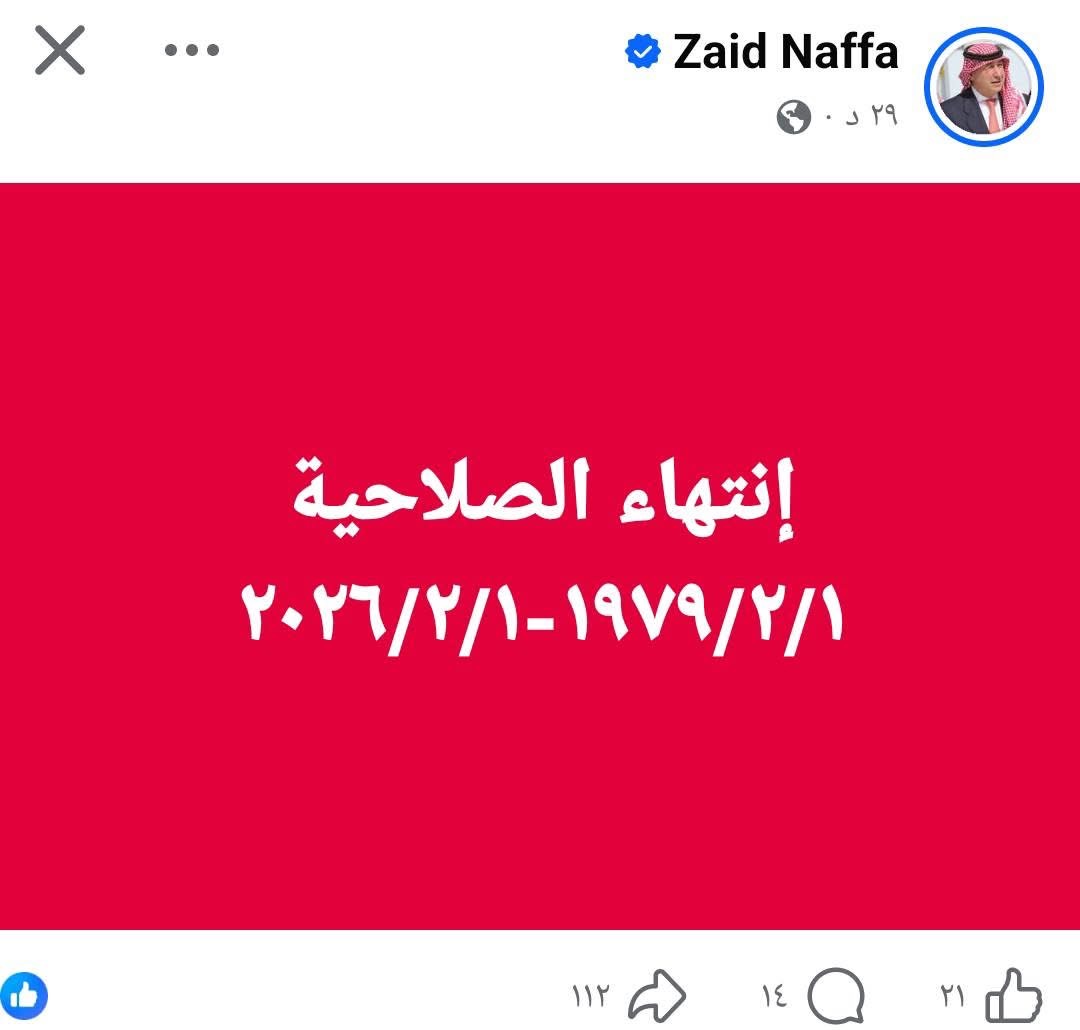 "إنتهاء الصلاحية.. 1/2/1979 - 1/2/2026"