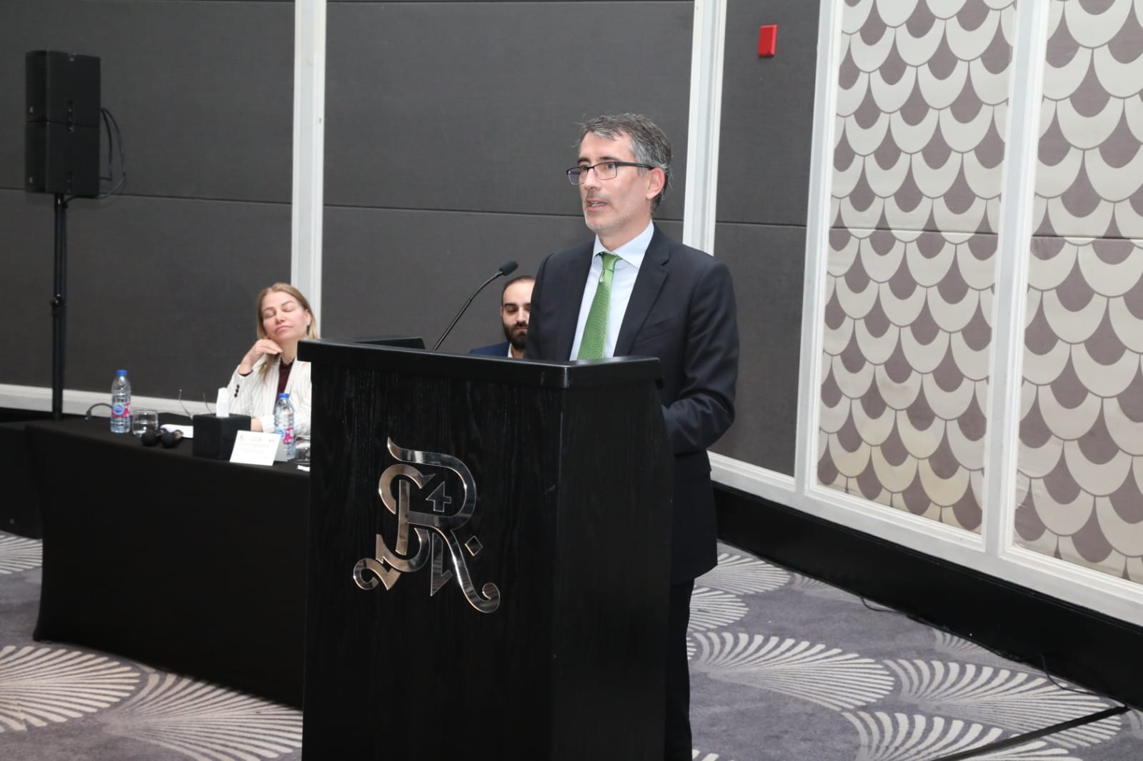 من ناحيته استعرض السيد لويس باسكوال الرئيس التنفيذي لشركة مشروع الناقل الوطني أكد في كلمته على أهمية مشروع الناقل الوطني للمياه كمشروع وطني استراتيجي لمعالجة شحّ المياه في الأردن، وضرورة تنفيذه بطريقة مستدامة ومسؤولة. كما شدد على التزام الجهات المعنية بتطبيق أعلى المعايير البيئية والاجتماعية، والشفافية في الإفصاح، وإشراك أصحاب المصلحة والمجتمعات المحلية في جميع مراحل المشروع، بما يضمن إدارة الآثار المحتملة بعدالة واستمرار التواصل حتى مرحلتي التنفيذ والتشغيل.