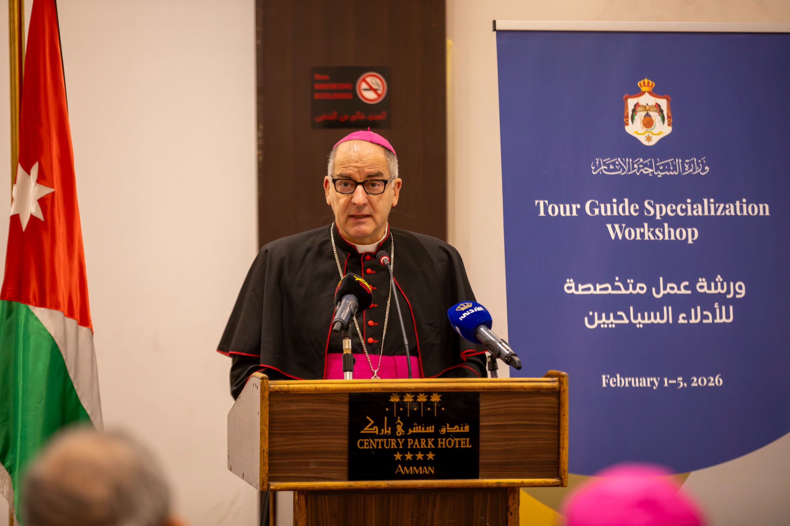 وقال الدكتور حجازين، إن هذه الورشة المتخصصة لتأهيل الأدلاء في مجال الحج المسيحي تأتي في إطار الجهود المستمرة للارتقاء بجودة السياحة الدينية في الأردن، وتعزيز مكانة المملكة كمقصد رئيسي لفهم تاريخ المسيحية وجذورها العميقة، سيما وأن ما يزخر به الأردن من مواقع مقدسة وفي مقدمتها موقع عماد السيد المسيح المغطس، يجعله محطة أساسية على خارطة الحج المسيحي العالمي، مؤكداً أن الدليل السياحي المتخصص يشكل عنصرا محوريا في نقل الرسالة الحضارية والروحية التي تجسدها هذه المواقع.