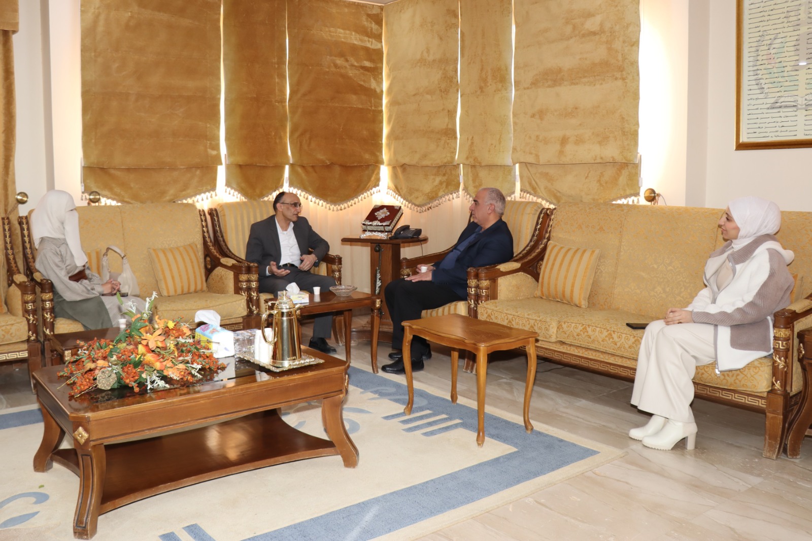 استقبل رئيس جامعة الحسين بن طلال الأستاذ الدكتور عاطف الخرابشة، في مكتبه في معان اليوم، وفداً من حزب الميثاق الوطني برئاسة رئيس الهيئة الإدارية للحزب في محافظة معان السيد خالد الحميدي، وبحضور عضو الهيئة الإدارية لفرع الحزب السيدة آمال العنطز، ومدير دائرة ممارسات العمل الحزبي في عمادة شؤون الطلبة السيد يامن الهباهبة.