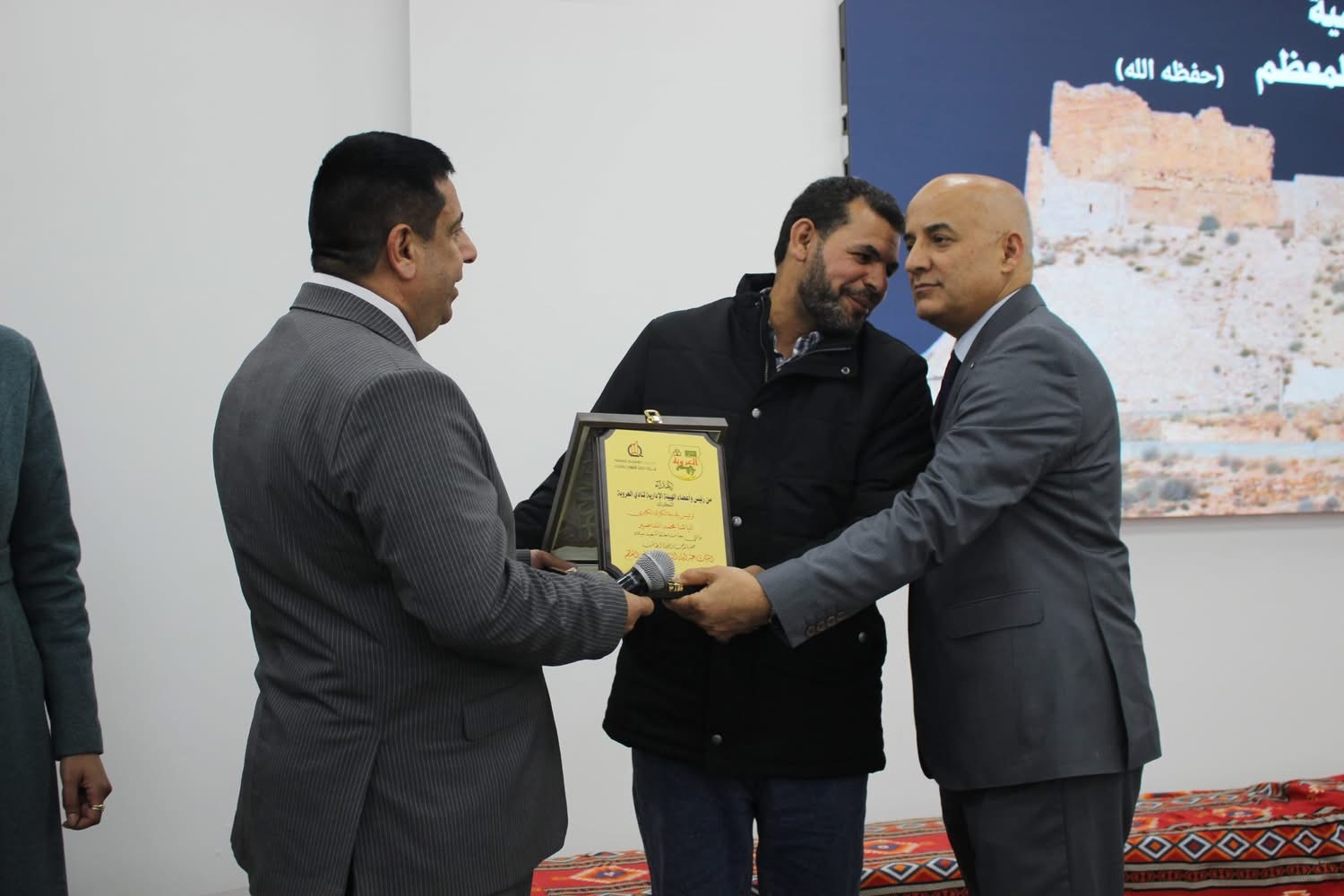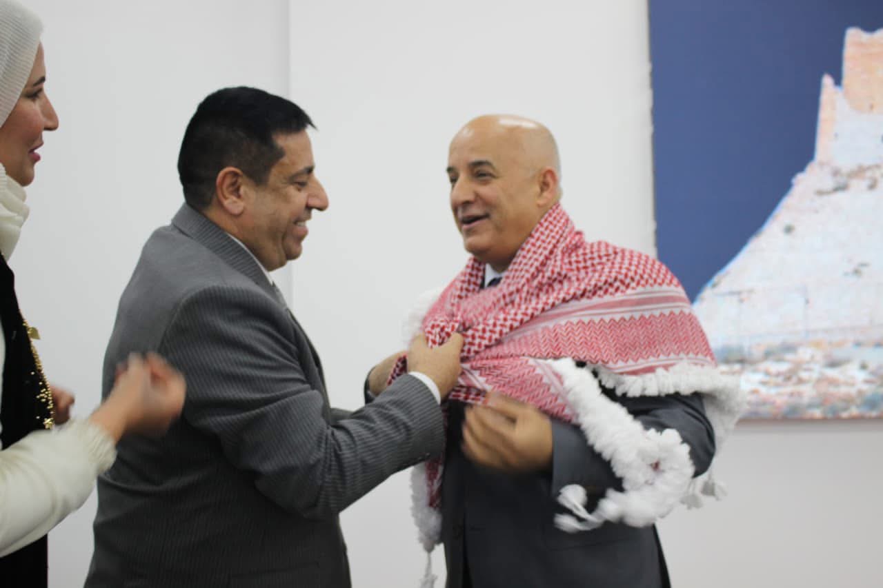 وفي مشهد يجسد الأصالة والهوية الوطنية، قدّمت السيدة كاملة الحباشنة شماغاً أردنيًا مهدّباً لراعي الحفل معالي الدكتور مهند المبيضين، في لفتة رمزية تعبّر عن قيم الاحترام والاعتزاز بالقيادة والرعاية الكريمة لهذا المحفل الوطني.