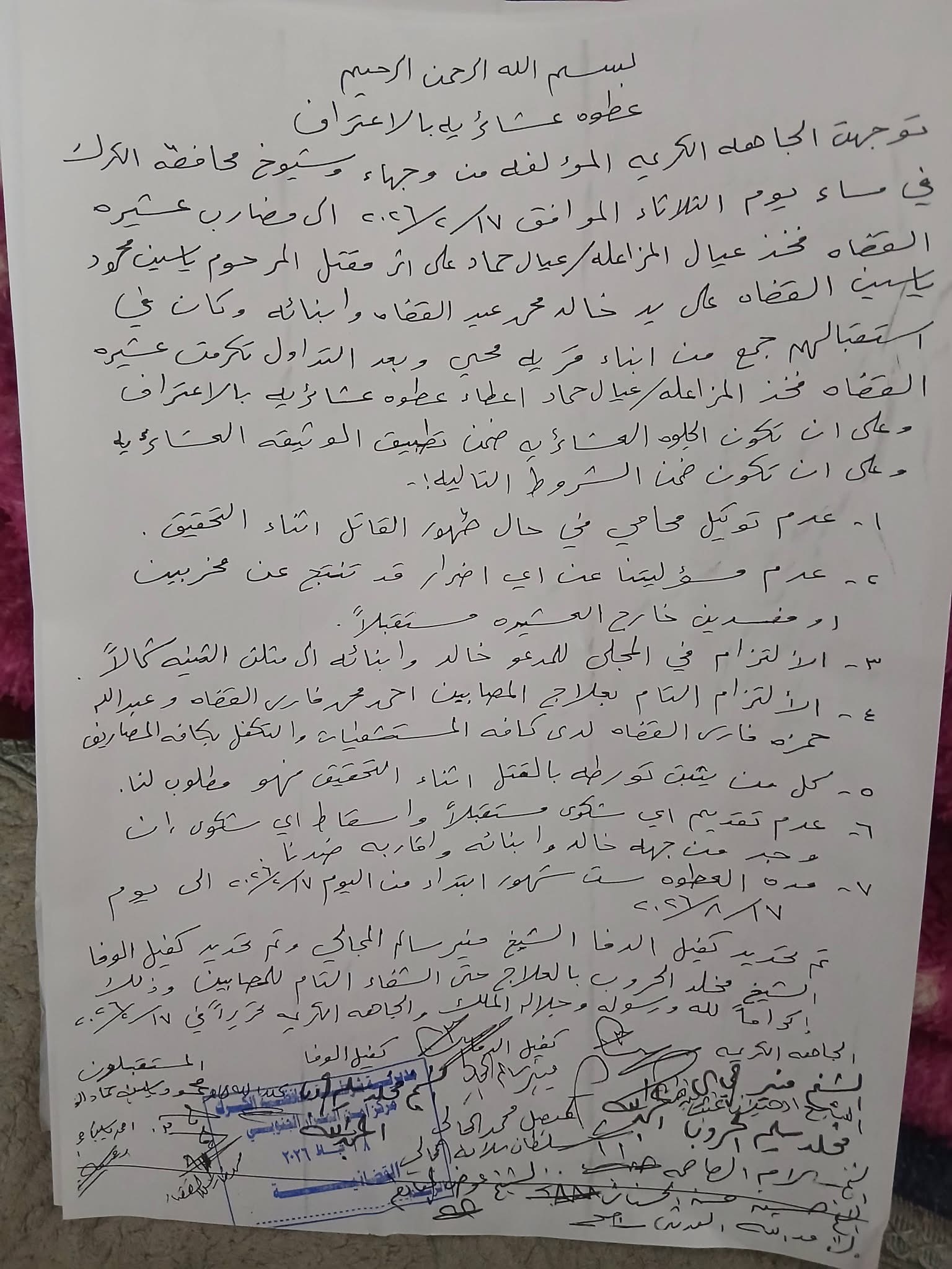 الكرك :- عطوة اعترف في المزار الجنوبي على إثر جريمة قتل الشاب القضاة