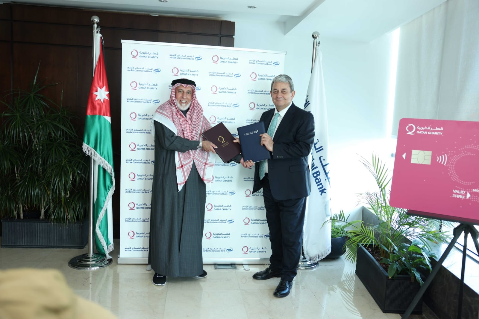 في إطار تعزيز التكافل الاجتماعي وتطوير أدوات العمل الخيري، احتفل البنك التجاري الأردني وقطر الخيرية مؤخراً بتوقيع اتفاقية تعاون استراتيجية لإطلاق أول بطاقة لقطر الخيرية "بطاقة قطر الخيرية المسبقة الدفع" والمخصصة للمستفيدين من برامج الرعاية الاجتماعية.