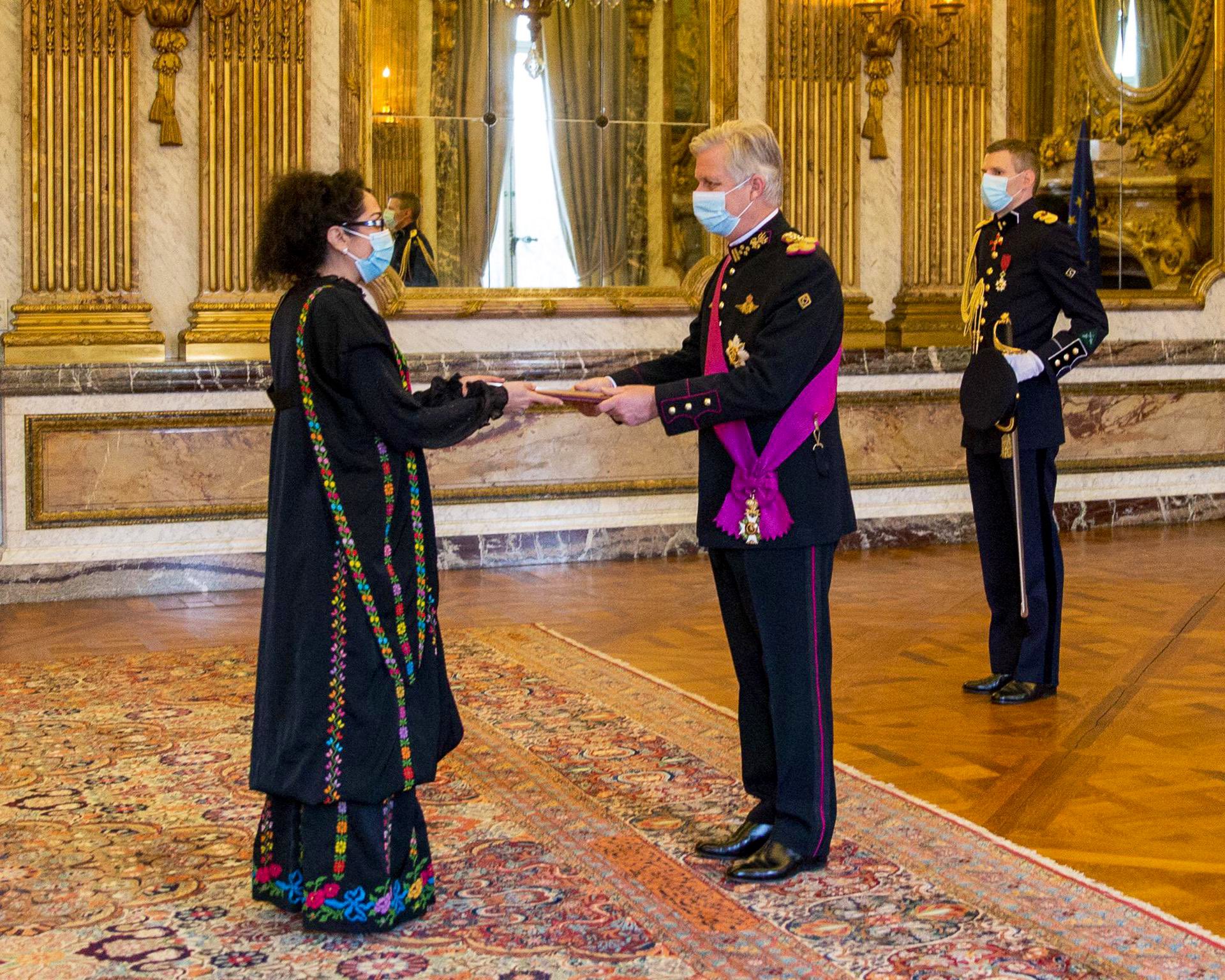 السفيرة الأردنية "سجى المجالي" أمام ملك بلجيكا بـ المدرقة الكركية