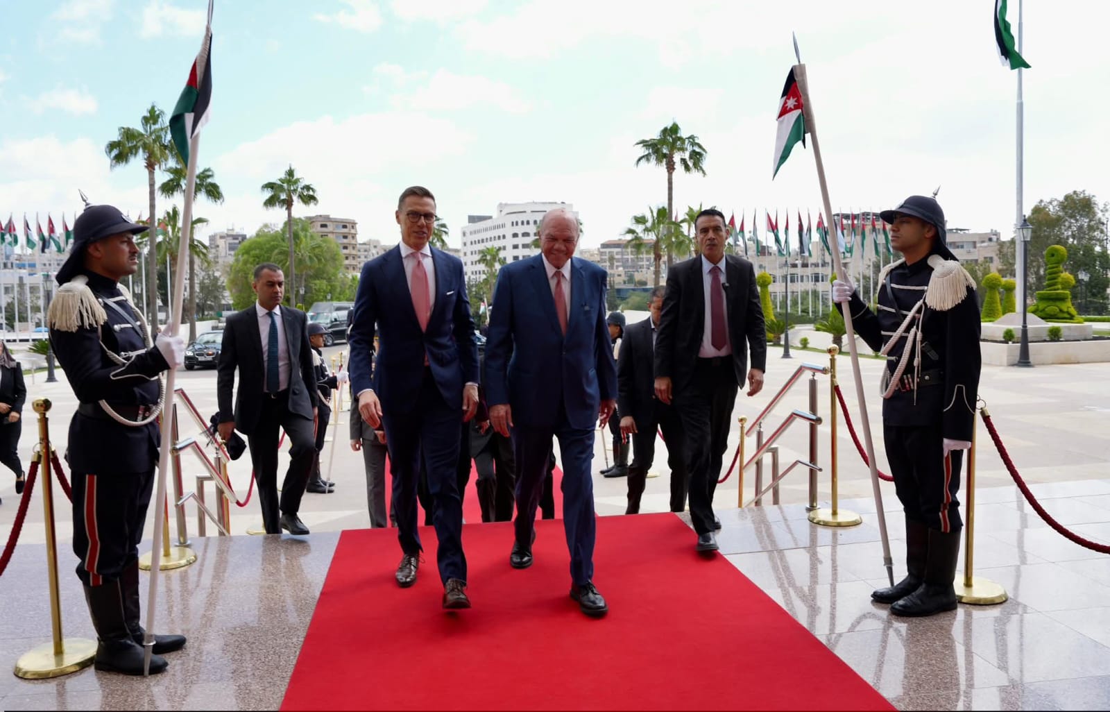 من جانبه، أشاد الرئيس الفنلندي بالدور المحوري الذي يضطلع به الأردن في تعزيز الأمن والاستقرار في المنطقة، مؤكدًا دعم بلاده لتوسيع مجالات التعاون المشترك، ومشددًا على أن حل الدولتين يشكل السبيل الأمثل لتحقيق السلام.