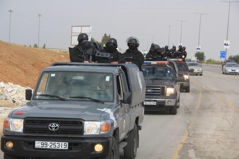 أعلنت مديرية الامن العام انه لمزيد من الضبط الامني وتكثيف الرقابة وانفاذ لاوامر الدفاع فقد جرت اعادة انتشار للقوة الامنية من دوريات آلية وراجلة وحملات امنية في مختلف مناطق المملكة لمراقبة وضبط كافة المخالفات المترتبة بعدم الالتزام باوامر الدفاع .