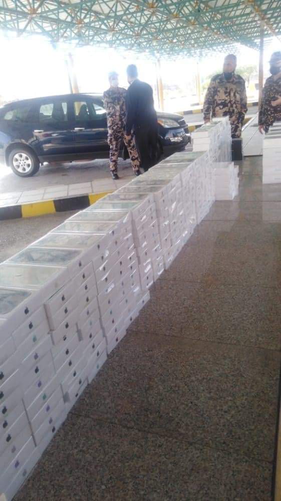 ومن جانب اخر احبطت الكوادر الجمركية العاملة في مديرية جمرك العقبة – مركز جمرك وادي عربة تهريب أجهزة خلوية نوع "ايفون" بعدد (205) وساعات بعدد (14) وسماعات بعدد (75).