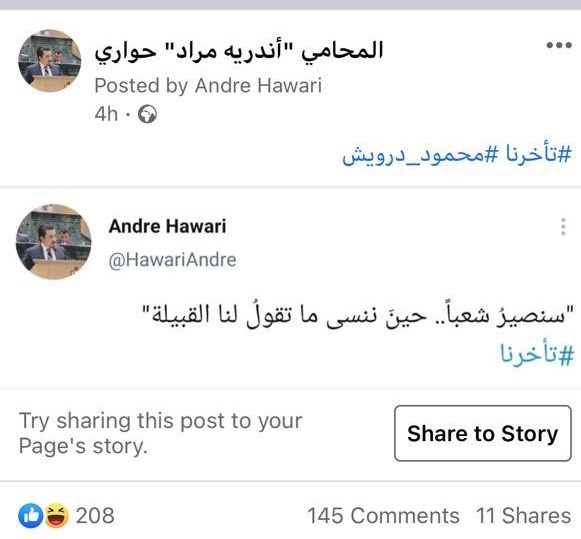 اشتعلت مواقع التواصل الاجتماعي ضد تغريدة نشرها النائب اندريه حواري قائلا فيها ( سنصير شعباً حين ننسى ما تقولُ لنا القبيلة...تأخرنا )