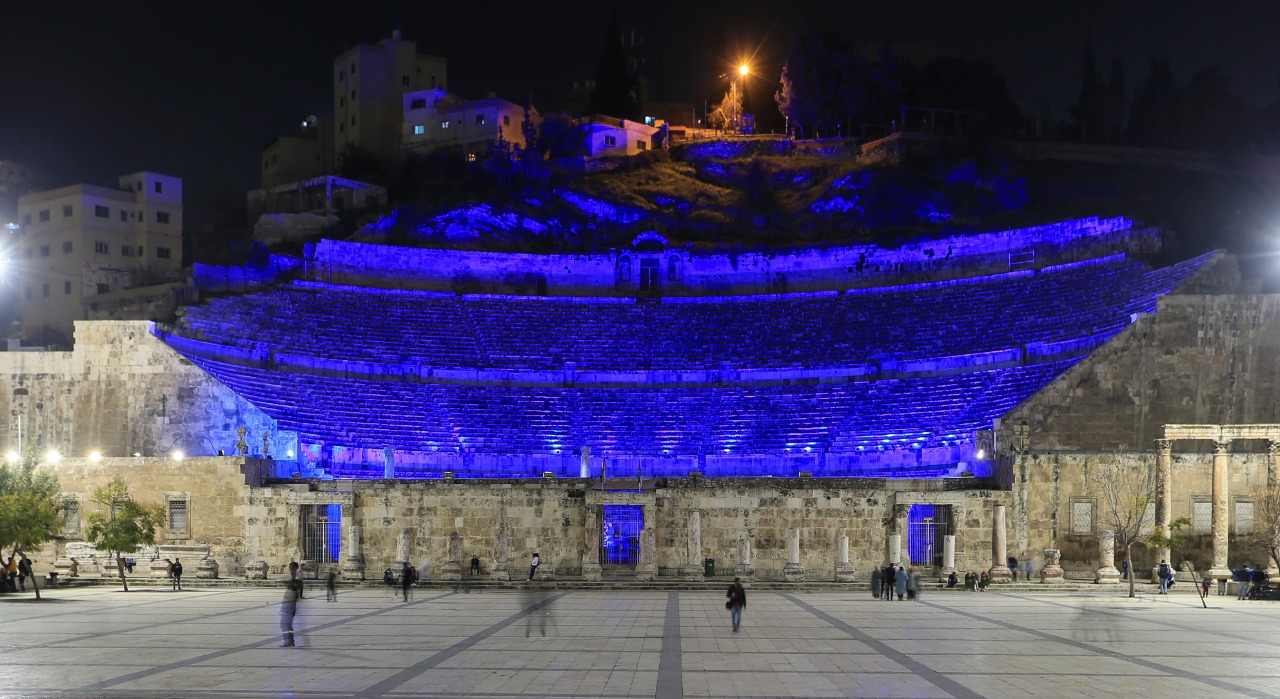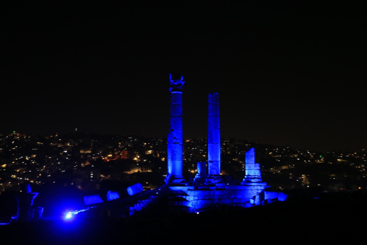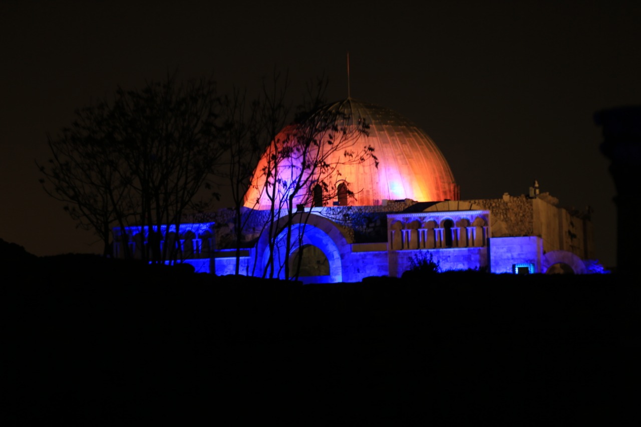 أضاءت وزارة السياحة والآثار بالتعاون مع أمانة عمان، مساء أمس الثلاثاء، موقع جبل القلعة والمدرج الروماني، ومبنى الوزارة، وذلك ضمن الاحتفالات بمئوية تأسيس الدولة الأردنية، وبيوم مدينة عمان الذي يصادف الثاني من آذار في كل عام.