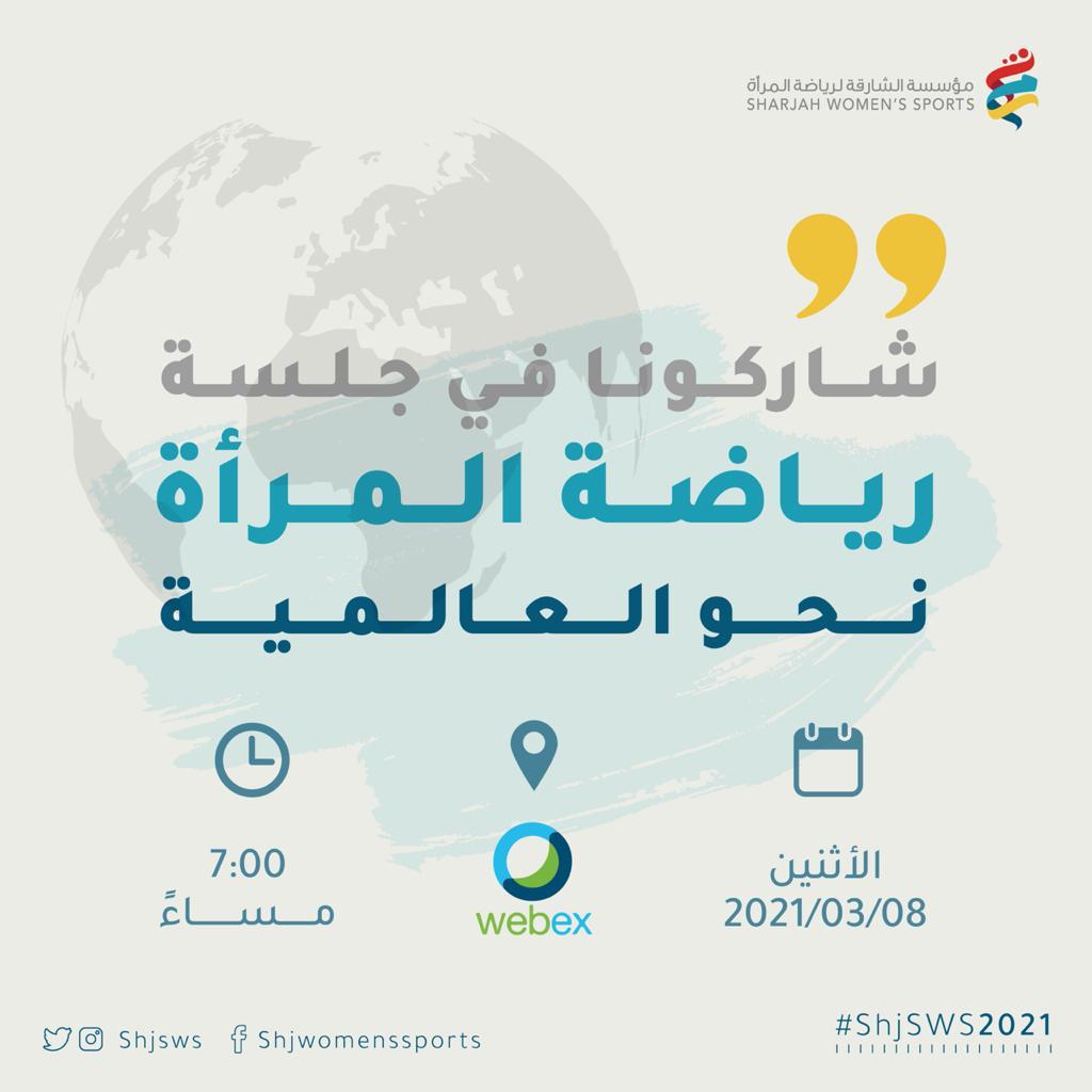 تنظم مؤسسة الشارقة لرياضة المرأة جلسة إعلامية افتراضية عن بعد، مساء يوم الإثنين 8 اذار عنوانها الأبرز رياضة المرأة نحو العالمية وذلك احتفالا بيوم المرأة العالمي، لتسليط الضوء على قصص النجاح ومناقشة التحديات الحالية لرياضة المرأة.