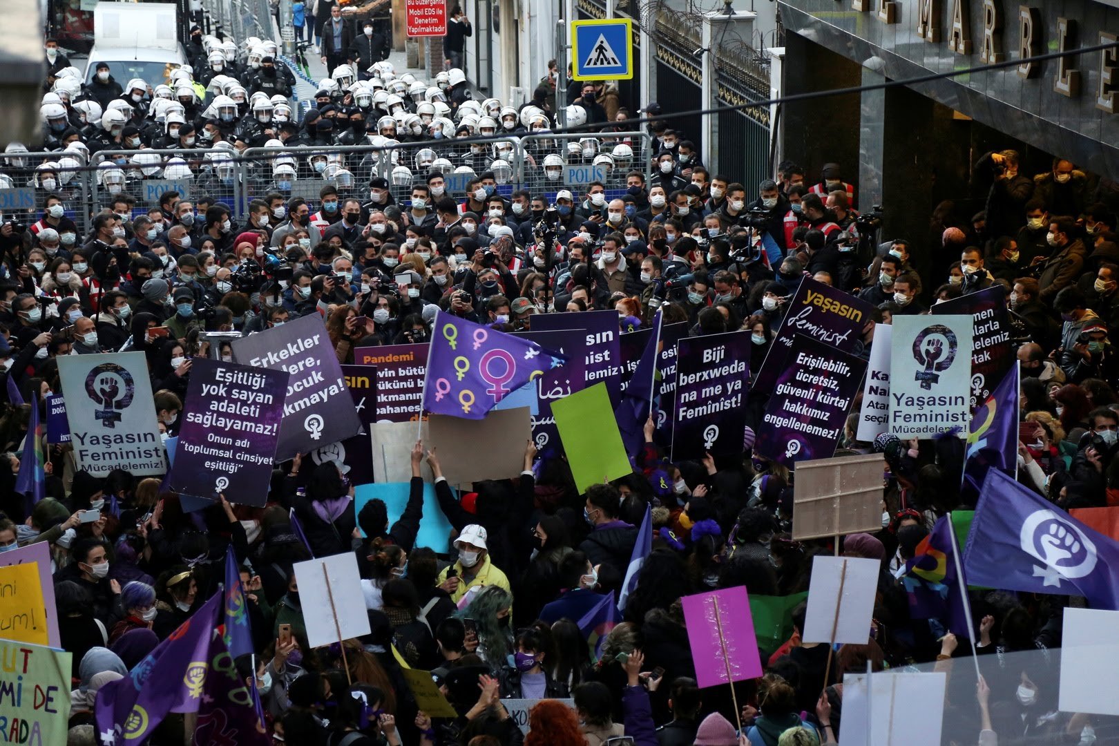 شهدت ساحة تقسيم، وسط مدينة اسطنبول التركية، أمس الاثنين، تجمع مئات النساء بمناسبة عيد المرأة العالمي، احتجاجا على "تقاعس السلطات في التحرك لمنع العنف ضد المرأة ومعاقبة مرتكبيه".