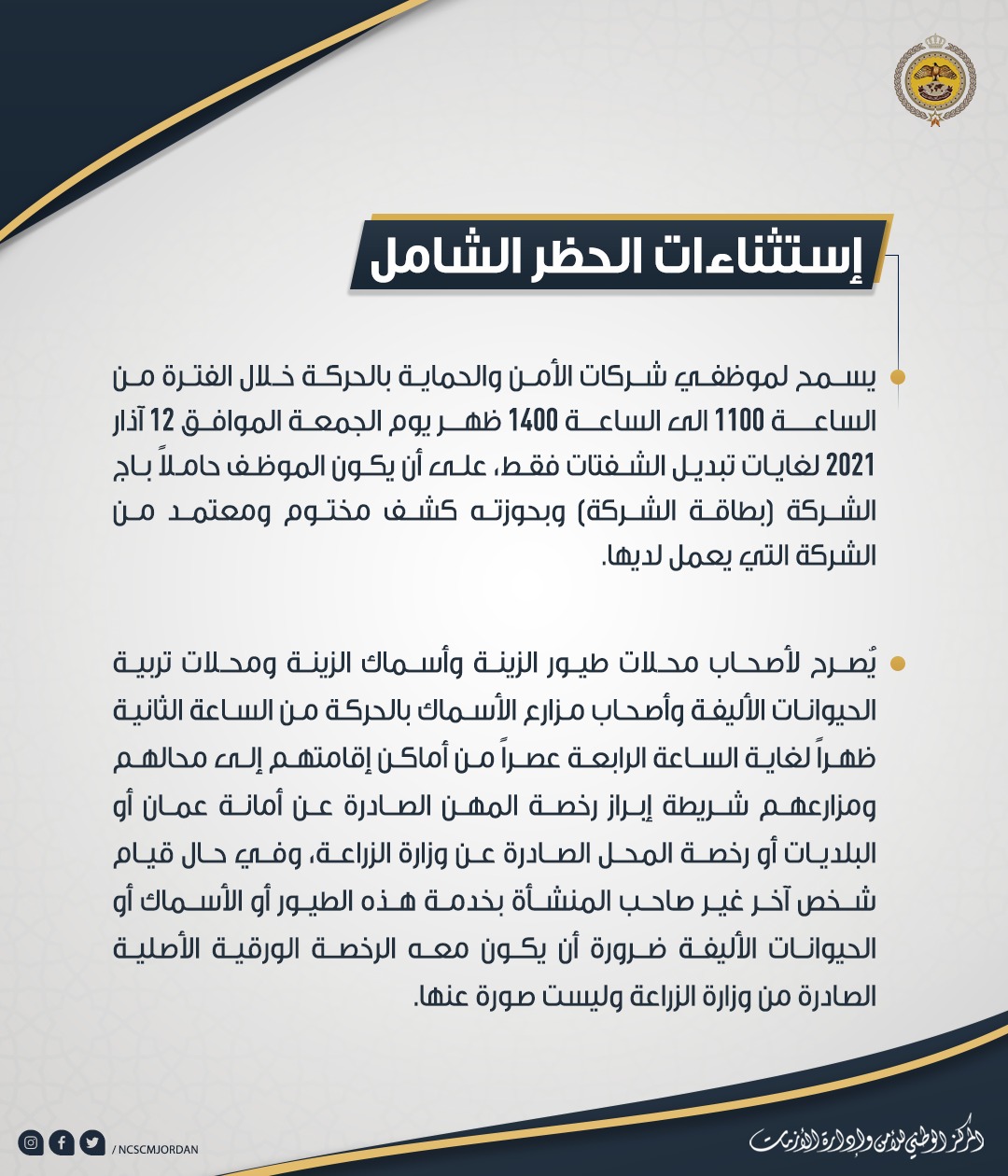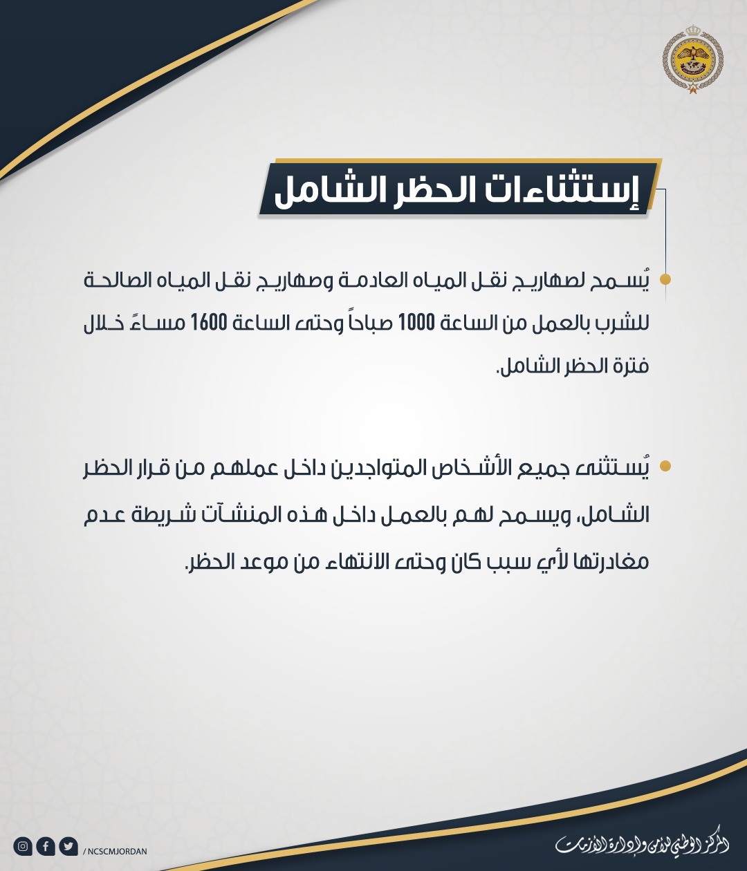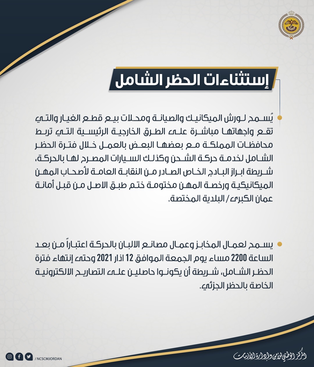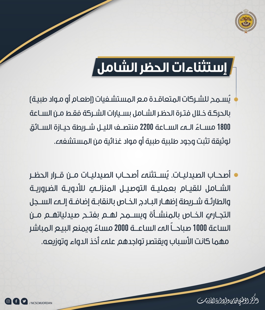 إستثناءات الحظر الشامل "تفاصيل"