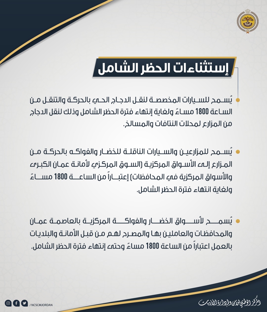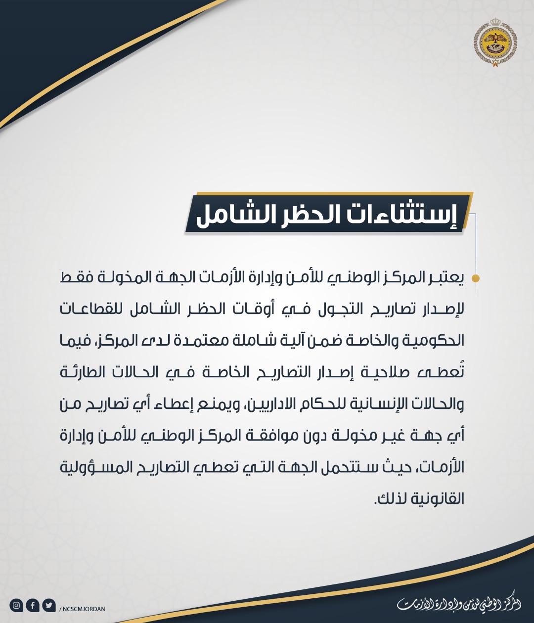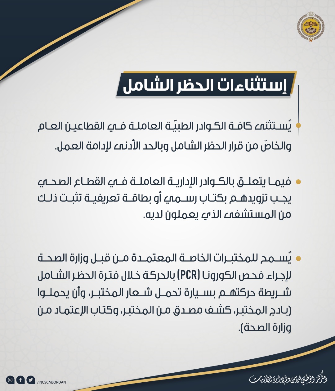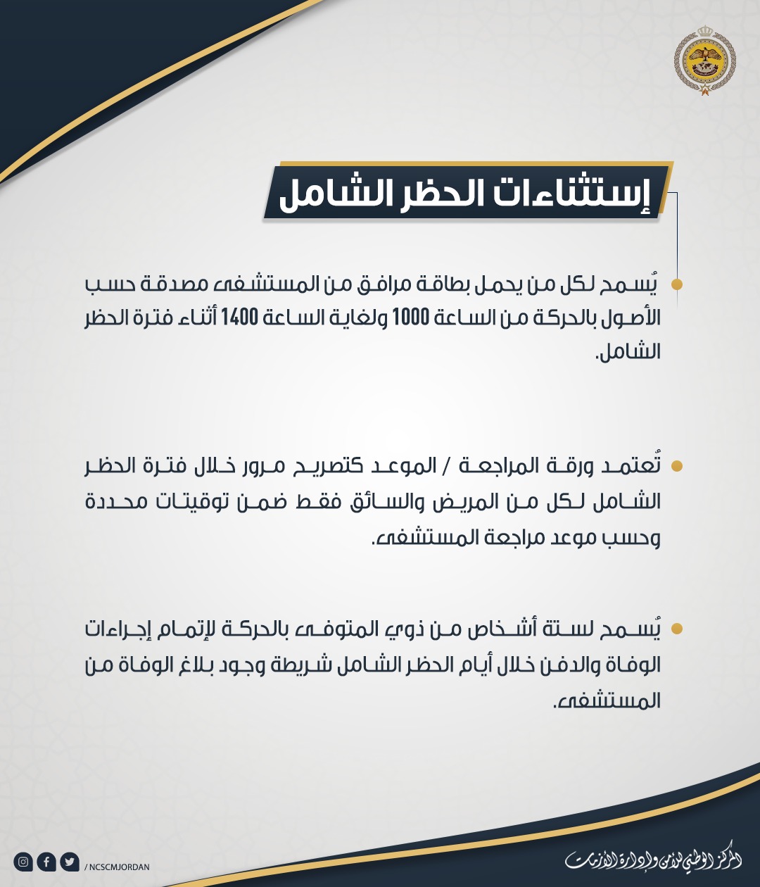 إستثناءات الحظر الشامل "تفاصيل"