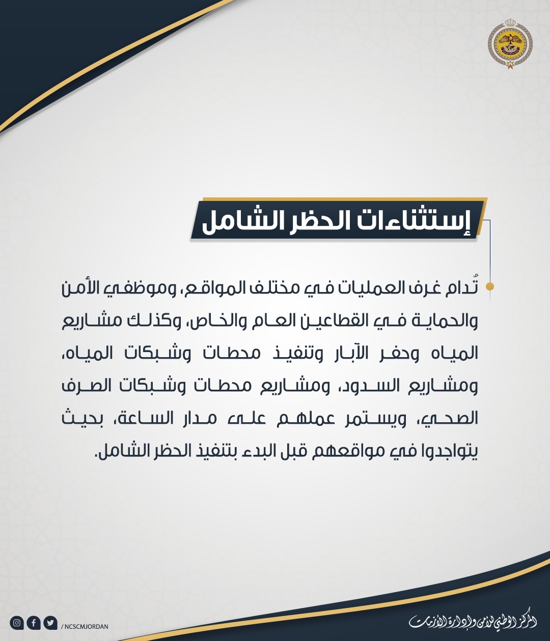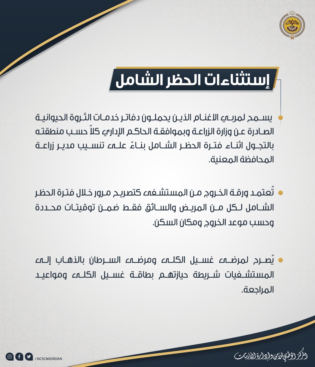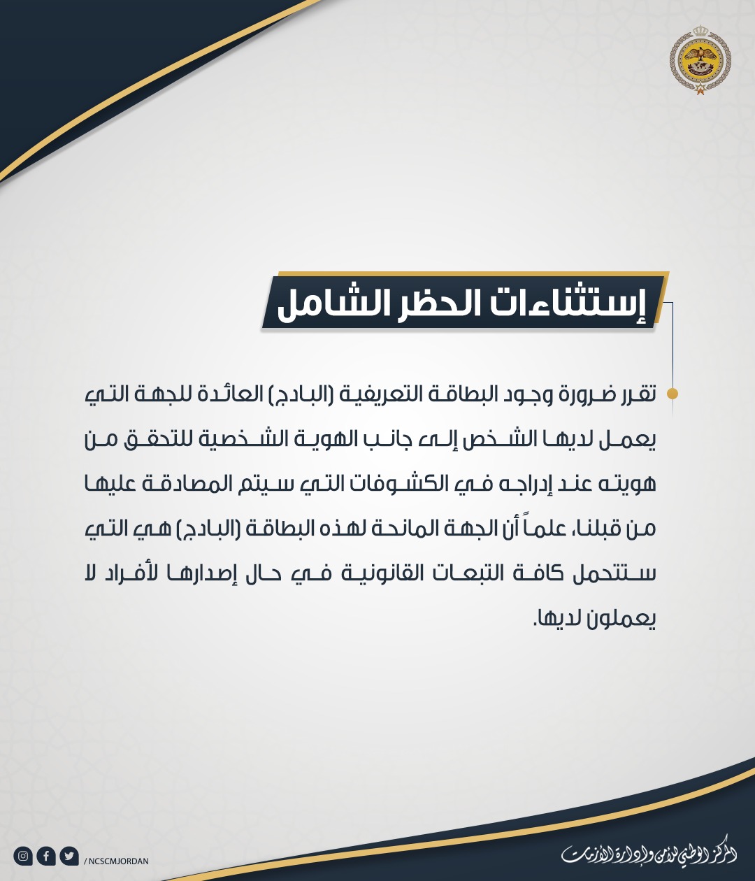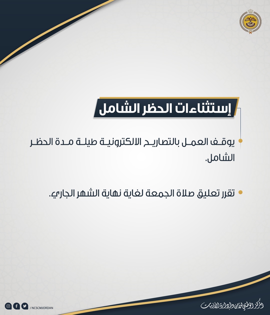 إستثناءات الحظر الشامل "تفاصيل"