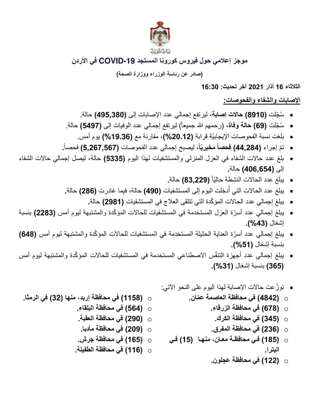 موجز إعلامي حول فيروس كورونا المستجد COVID-19 في الأردن