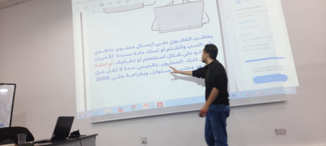 وشدد حسين الصرايرة في الحصة الثانية على عدة محاور منها ان يكون لدى اي شخص يتعامل مع الإعلام ووسائل التواصل الاجتماعي قيمة أخلاقية،ويكون ملم بالقانون وما يكتب يكون فيه قيمة اخبارية .