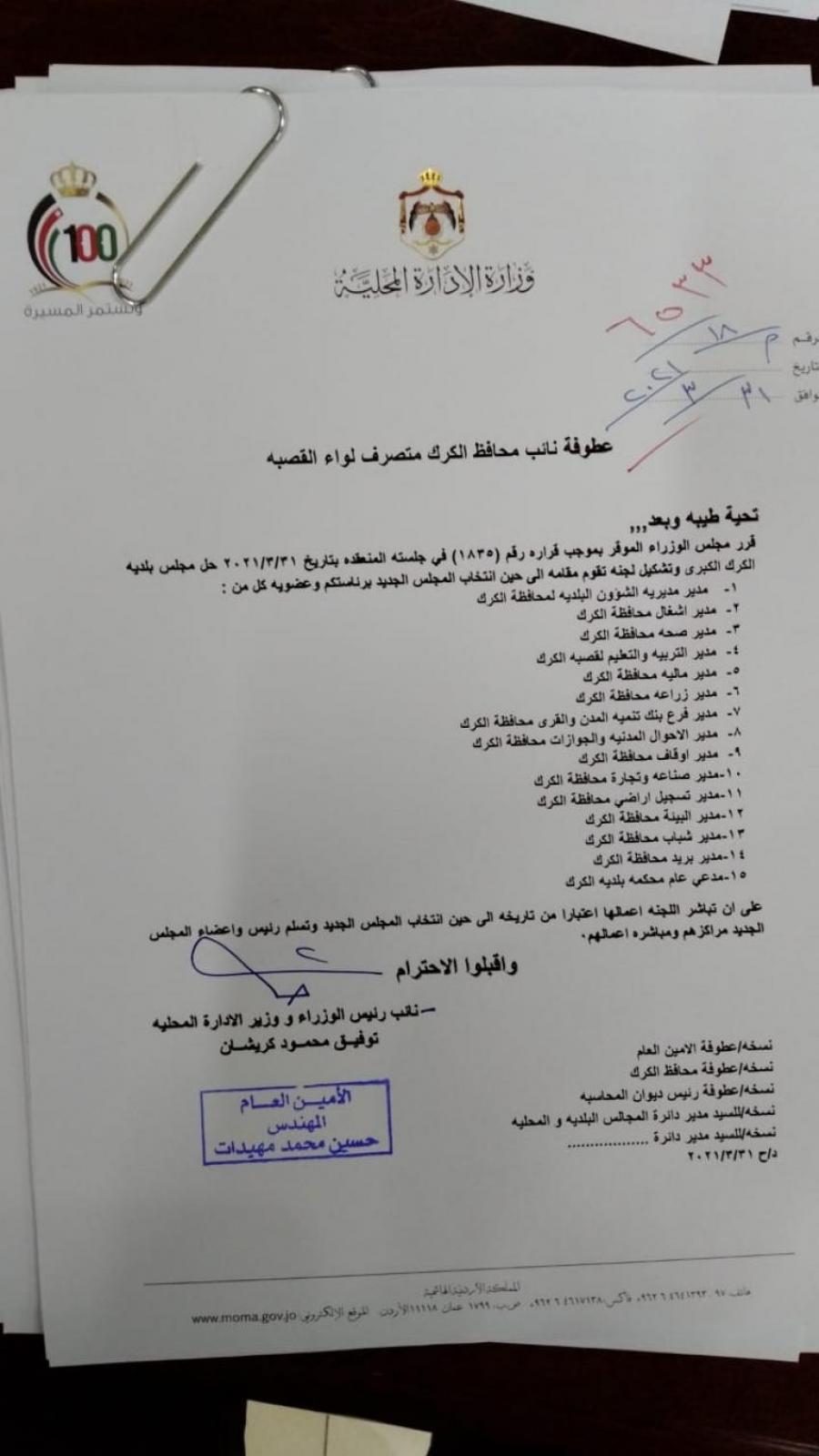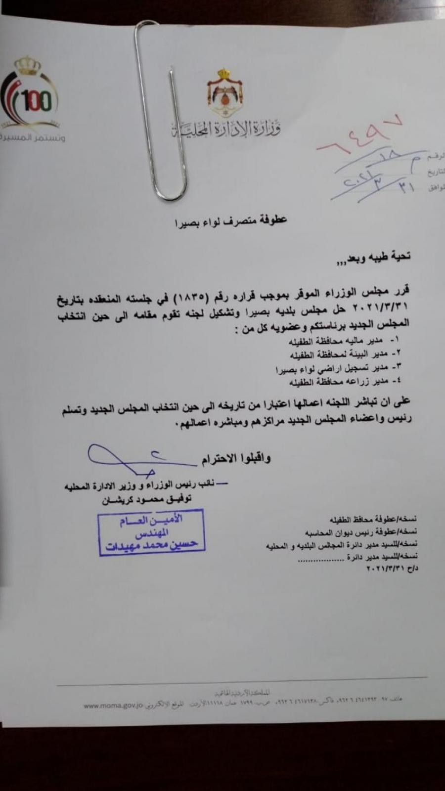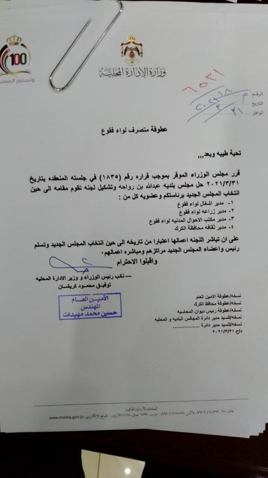 قررت وزارة الادارة المحلية الأربعاء، تكليف لجان مؤقتة لادارة بلديات