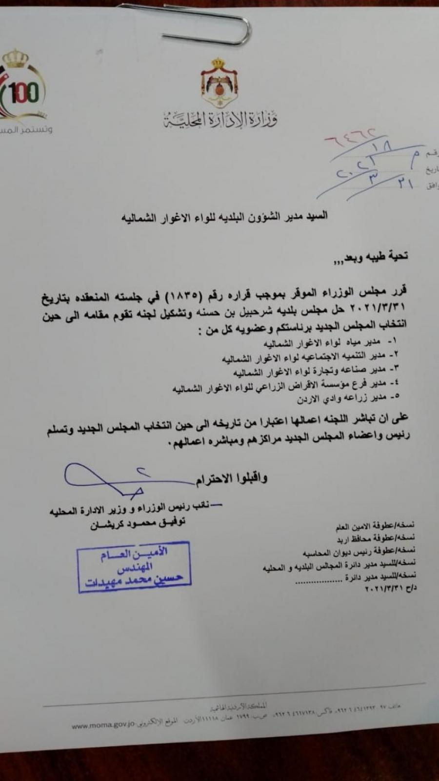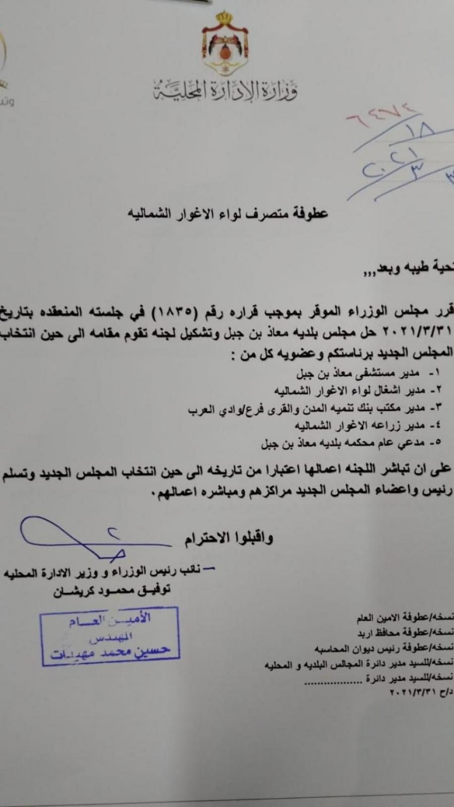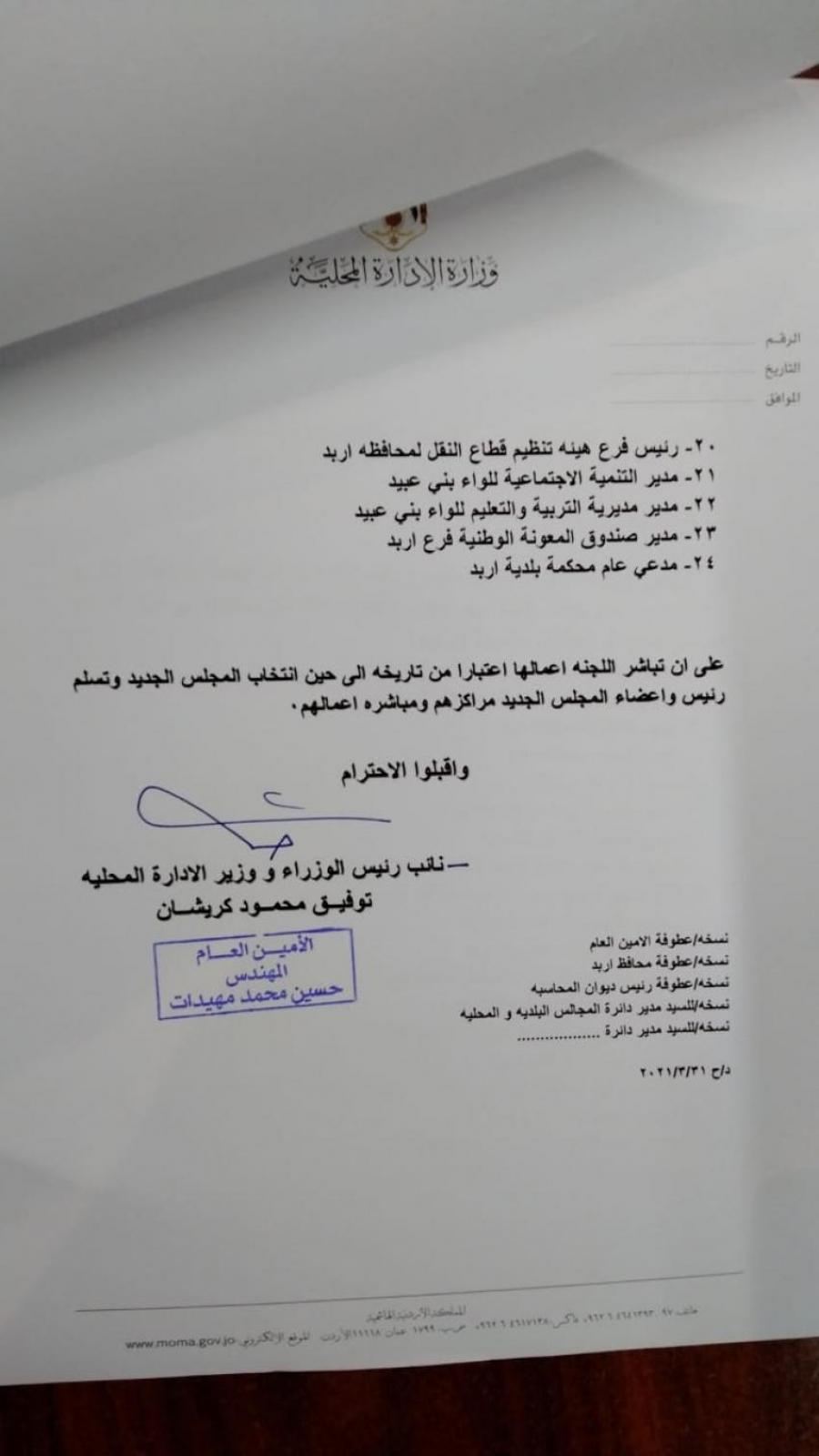 لجان مؤقتة لادارة بلديات (أسماء) تحديث