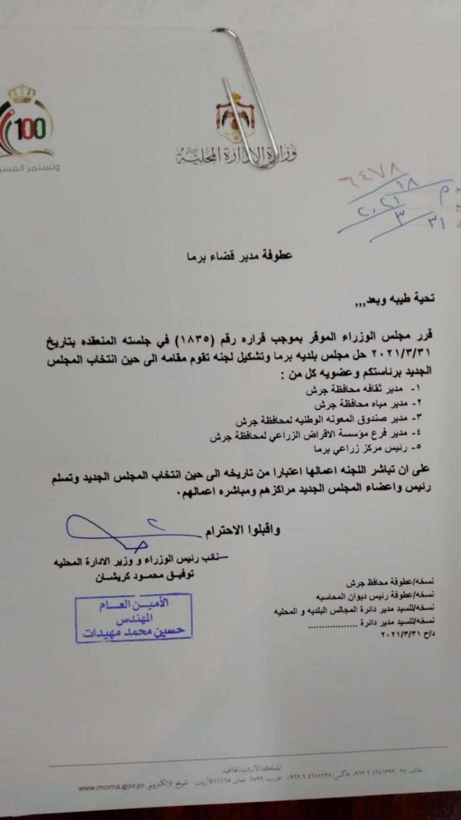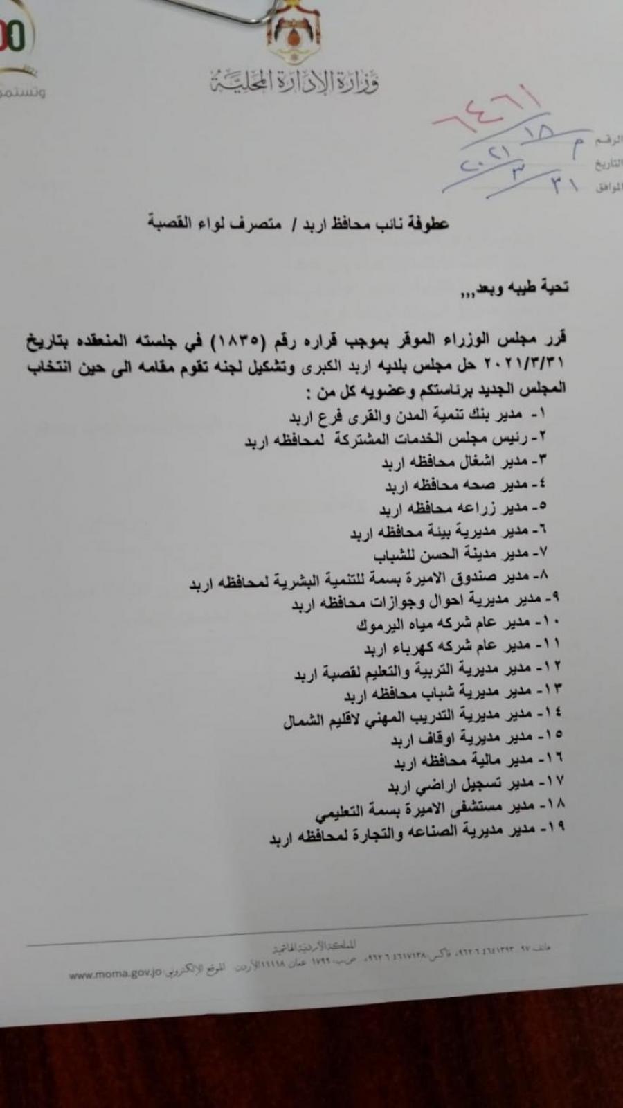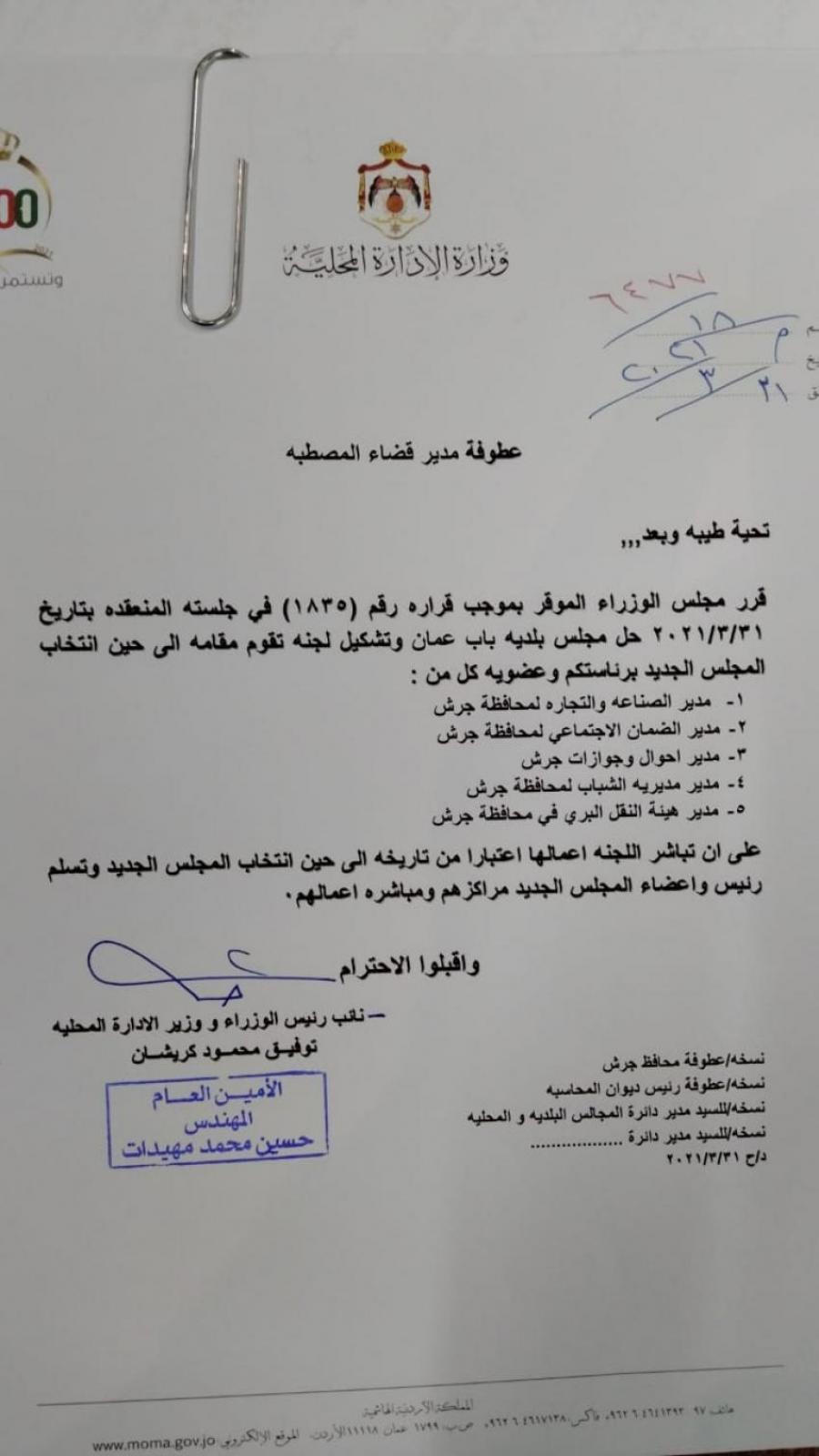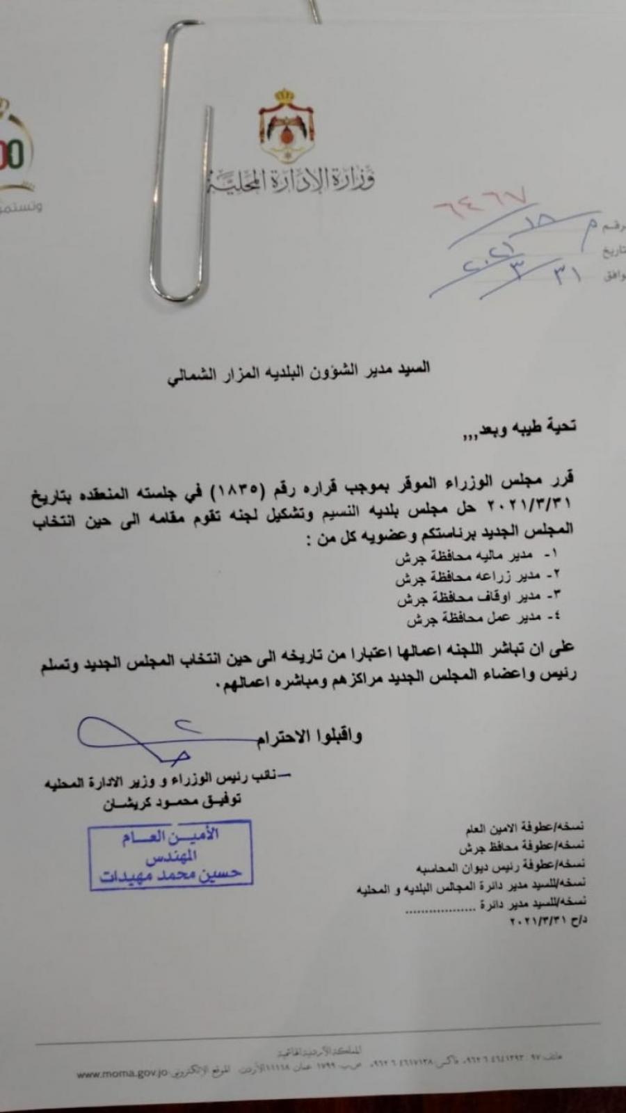 لجان مؤقتة لادارة بلديات (أسماء) تحديث