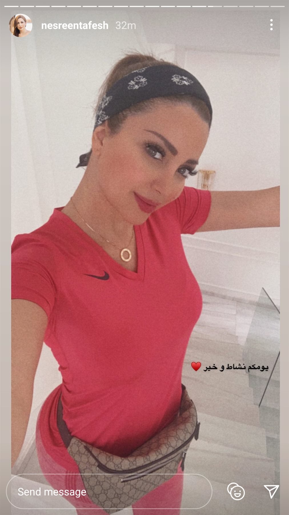 نشرت النجمة نسرين طافش صورة جديدة لها عبر خاصية الاستوري علي حسابها الشخصي على "إنستجرام".