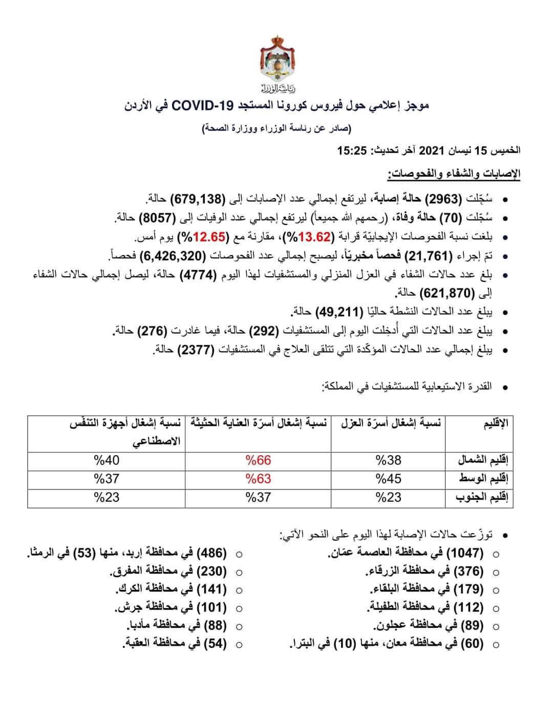 سجل في المملكة اليوم 70 حالة وفاة و2963 بفيروس كورونا