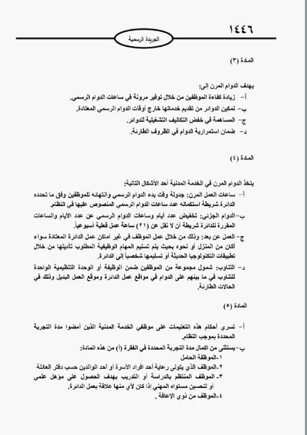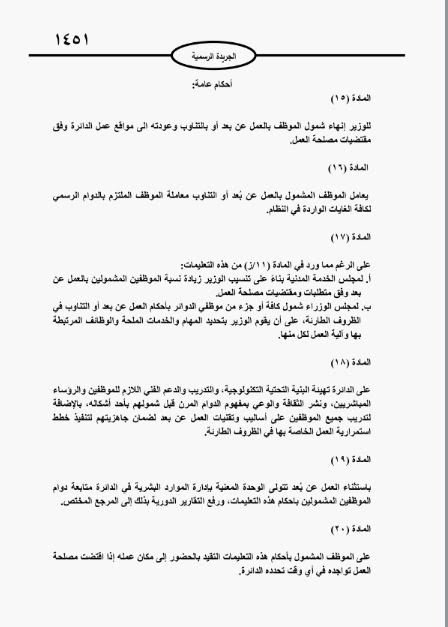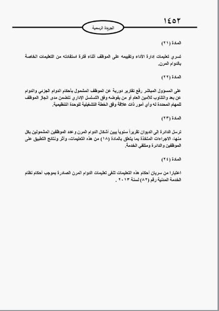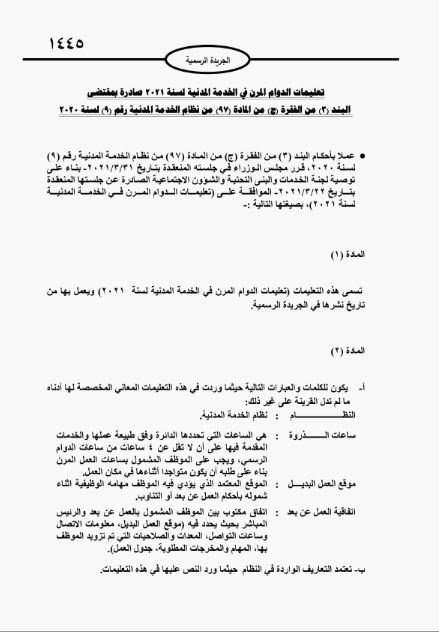 صدر في عدد الجريدة الرسمية اليوم الخميس تعليمات الدوام المرن في الخدمة المدنية لسنة 2021.
