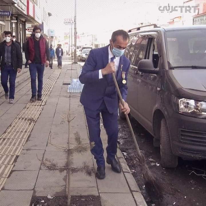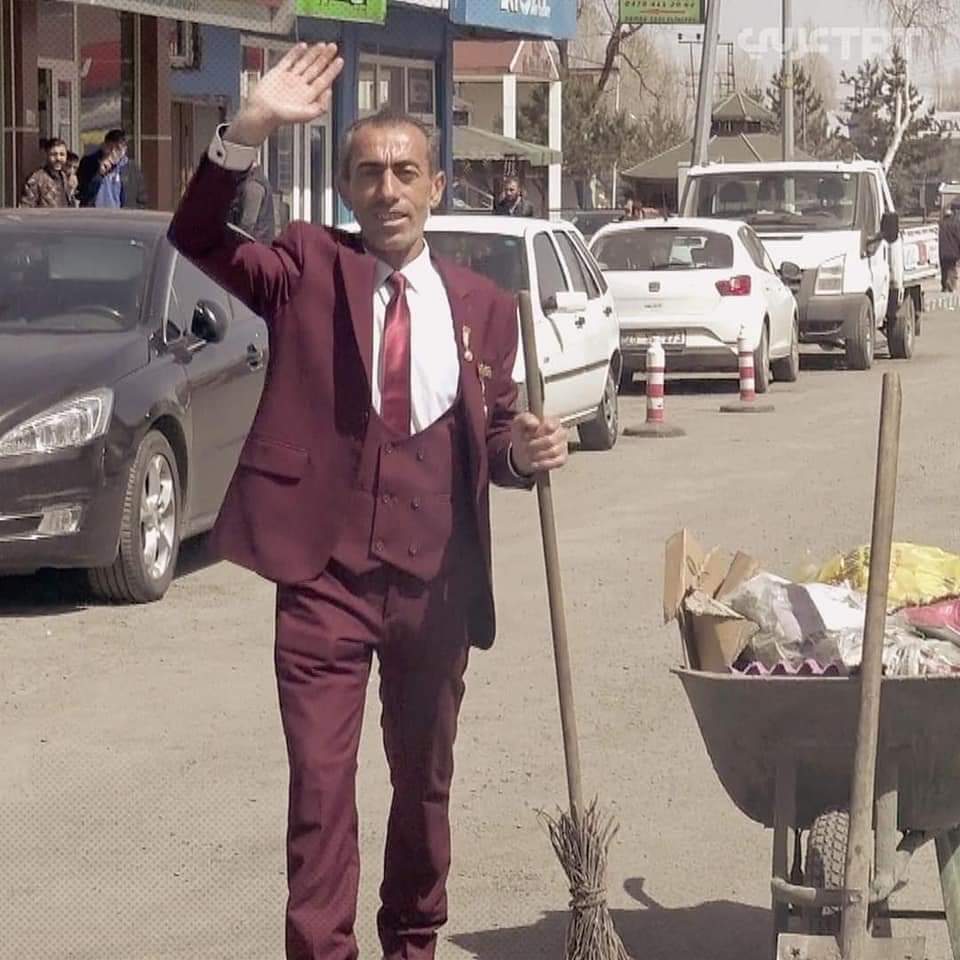يُنظّف عامل النظافة التركي أنصار كَرديغا (45 عامًا)، منذ 21 سنة، في بلدية منطقة غولا بمدينة أرداهان التركية، الشوارع مرتدياً أجمل ملابسه ويخرج في أبهى حُلته.