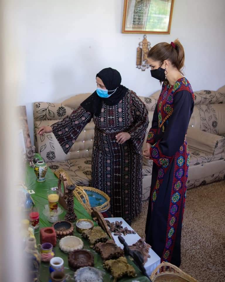 التقت جلالة الملكة رانيا العبدالله اليوم مع رئيسة وأعضاء مجلس ادارة جمعية سيدات اليسرى الخيرية، وذلك خلال زيارة إلى قرية الفيصلية في محافظة مادبا بهدف الاطلاع على جزء من برامج التمكين الاقتصادية للمرأة وبحث سبل مساعدتها لتعزيز دورها في تحسين مصادر الدخل للأسر.