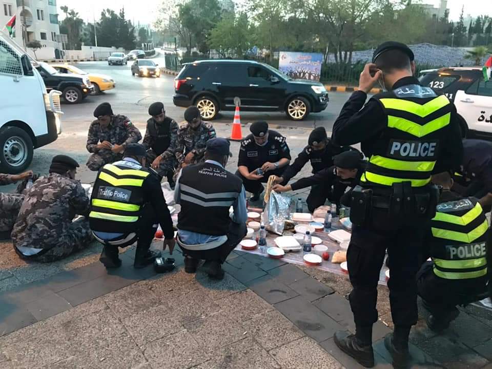 وشارك ضباط الأمن العام من كافة الرتب والمستويات القيادية، زملاءهم العاملين في الميدان موائد الإفطار، كما حرصت مديرية الأمن العام على تزويد كافة الدوريات العاملة بما يلزمها ويمكنها من القيام بواجبها باستمرارية، وبمعنوية عالية.