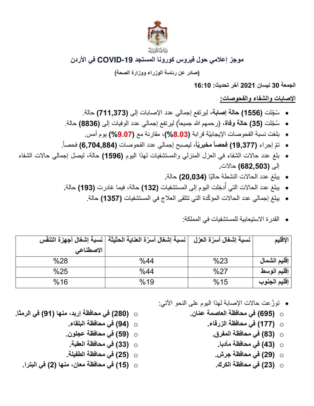 (صادر عن رئاسة الوزراء ووزارة الصحة)
