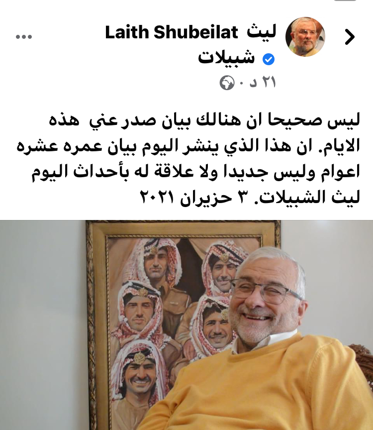 وجاء نفي الشبيلات على صفحته عبر الفيسبوك حيث قال: -