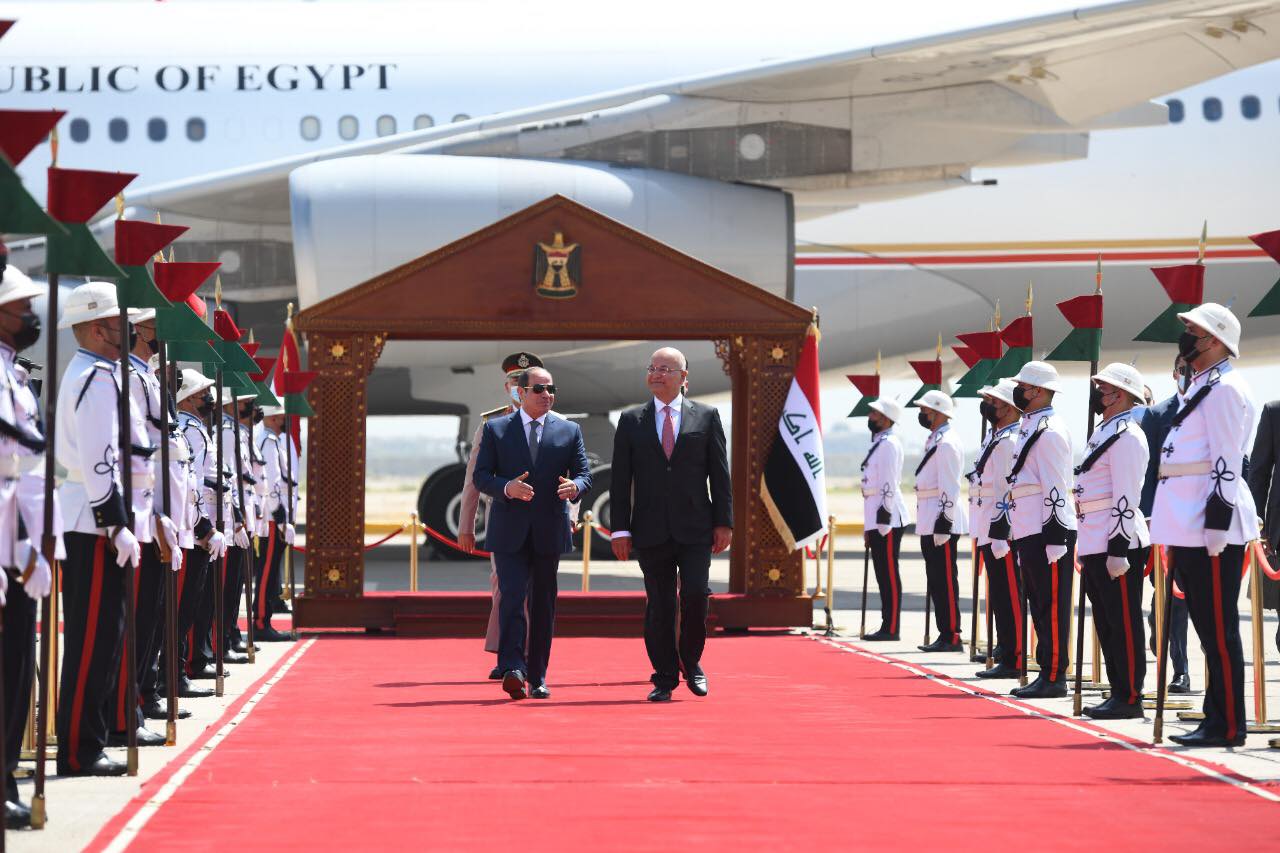 وصل الرئيس المصري عبد الفتاح السيسي، اليوم الاحد، الى العاصمة العراقية بغداد؛ للمشاركة في فعاليات القمة الثلاثية بين الأردن ومصر والعراق وذلك في إطار الجولة الرابعة لآلية التعاون الثلاثي التي انطلقت بالقاهرة في مارس 2019، حيث كان في استقباله بمطار بغداد الدولي الرئيس العراقي برهم صالح.