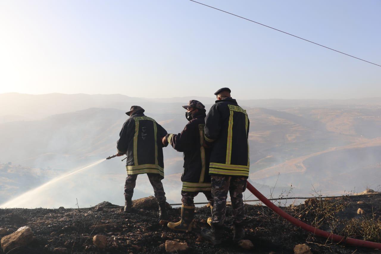 الدفاع المدني يخمد حريق أعشاب جافه واشجار حرجيه ومثمره في محافظة جرش