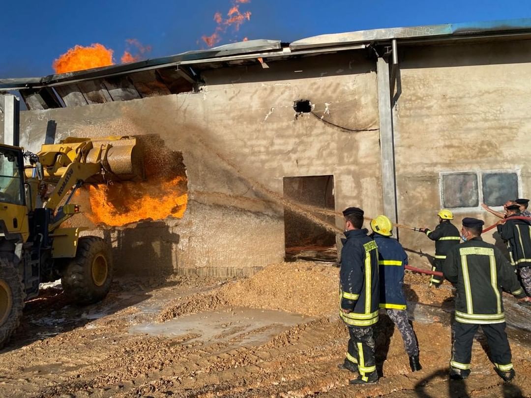 قال الناطق الإعلامي باسم مديرية الأمن العام أنَّ الفرق المتخصصة والعاملة في مديريات دفاع مدني غرب إربد وشرق إربد وعجلون والبلقاء تعاملت مساء اليوم مع حريق شب داخل مستودع ومصنع يحتوي على ماكينات ومواد أولية تستخدم للطباعة والتغليف في منطقة المشارع/ الريان/ المرزة، بمحافظة إربد، بمساحة إجمالية بلغت (1000)م، وكان لسرعة الإستجابة والاستعداد المسبق لمرتبات الدفاع المدني الأثر الكبير في عدم امتداد الحريق ووصوله إلى كامل المصنع، بالرغم من طبيعة المواد الأولية الكيماوية المستخدمة في عملية التصنيع والتي ساعدت في سرعة انتشار الحريق، هذا ولم ينتج عن الحريق أي إصابات بالأرواح، وتم فتح تحقيق بالأسباب الرئيسية للحريق.