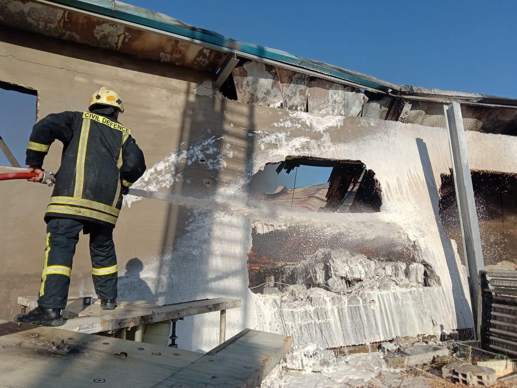 الدفاع المدني يخمد حريقاً داخل مستودع تابع لأحد المصانع في محافظة إربد