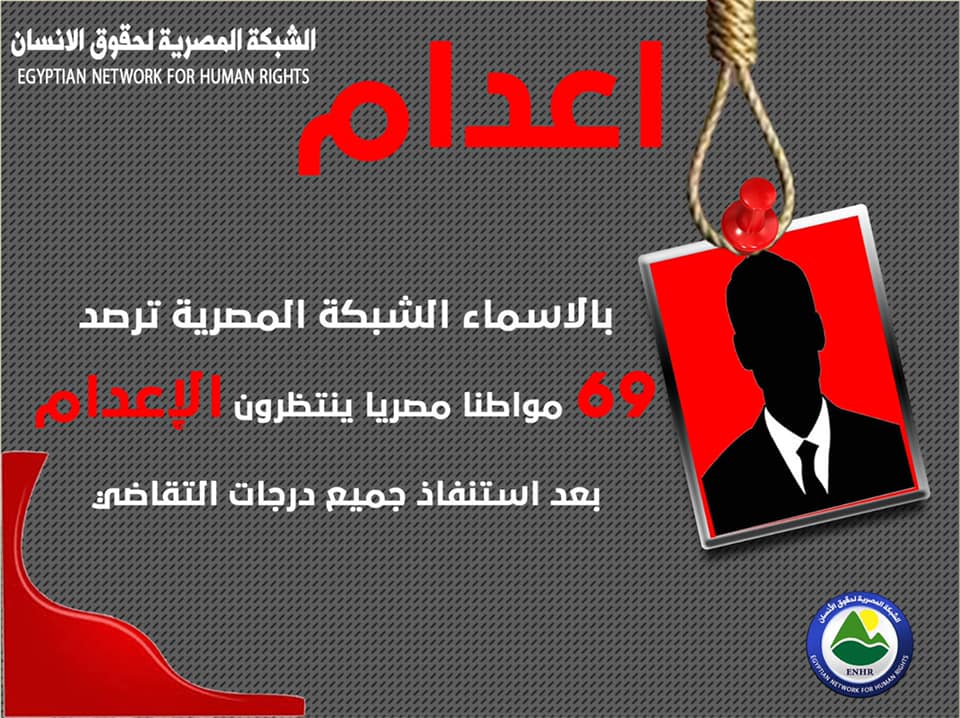 وأظهر تقرير لمنظمة حقوقية مصرية مستقلة أن 69 مواطنًا ينتظرون الإعدام بعد استنفاد جميع درجات التقاضي؛ لتصبح أحكام الإعدام الصادرة بحقهم واجبة التنفيذ.