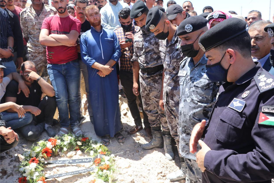 وشارك في تشييع الجثمان الطاهر مندوبا عن مدير الامن العام اللواء الركن حسين الحواتمة ،قائد قوات الدرك ومدير شرطة الكرك وعدد من كبار ضباط الامن العام وزملاء الفقيد من ضباط وضباط صف وافراد مديرية الامن العام وجمع غفير من اهل وذوي الفقيد .