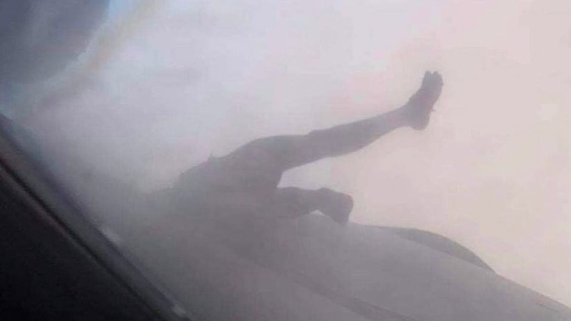 وتظهر اللقطات حوالي 10 أشخاص جالسين تحت الجناح، فيما يعبر شخصان آخران المدرج أمام الطائرة المتحركة.