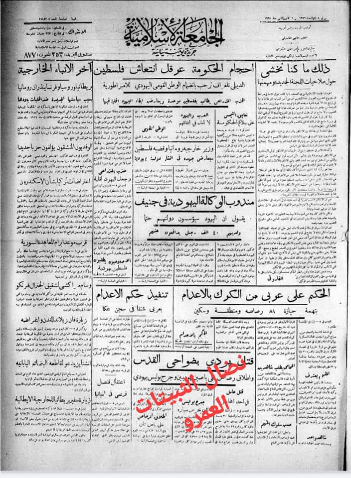 تطالعون خبرا نشرته صحيفة “الجامعة الإسلامية” التي كانت تصدر في فلسطين.