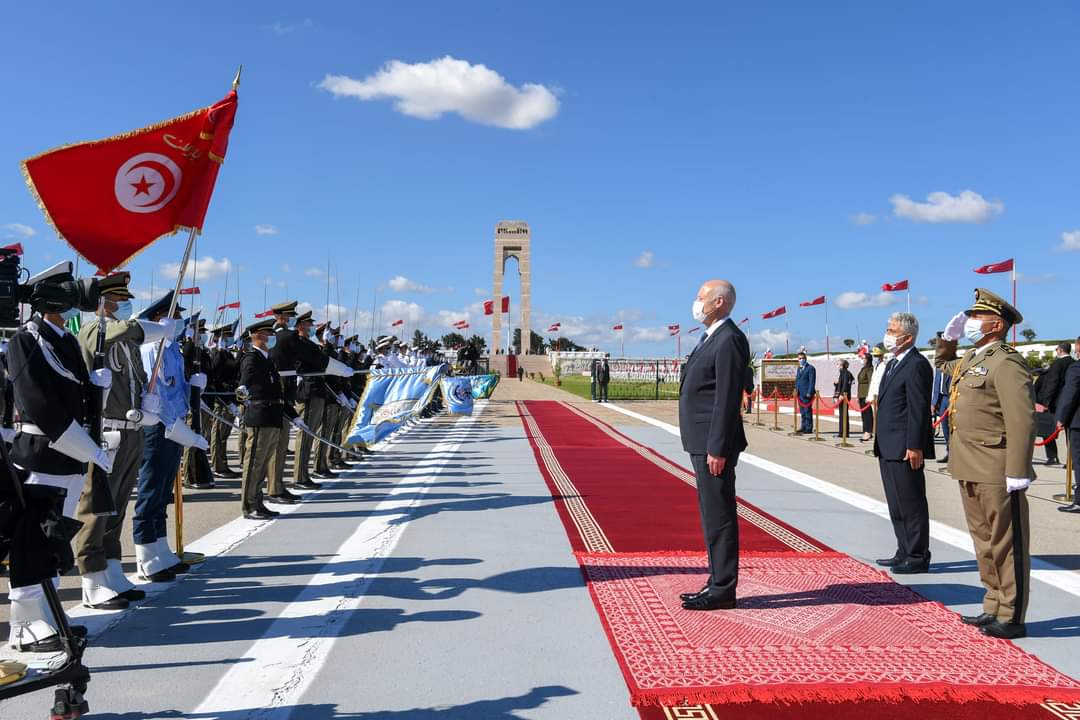 أشرف رئيس الجمهورية التونسية " قيس سعيد، صباح اليوم الجمعة 15 أكتوبر 2021 بروضة الشهداء بمدينة بنزرت، على موكب إحياء الذكرى 58 لعيد الجلاء.
